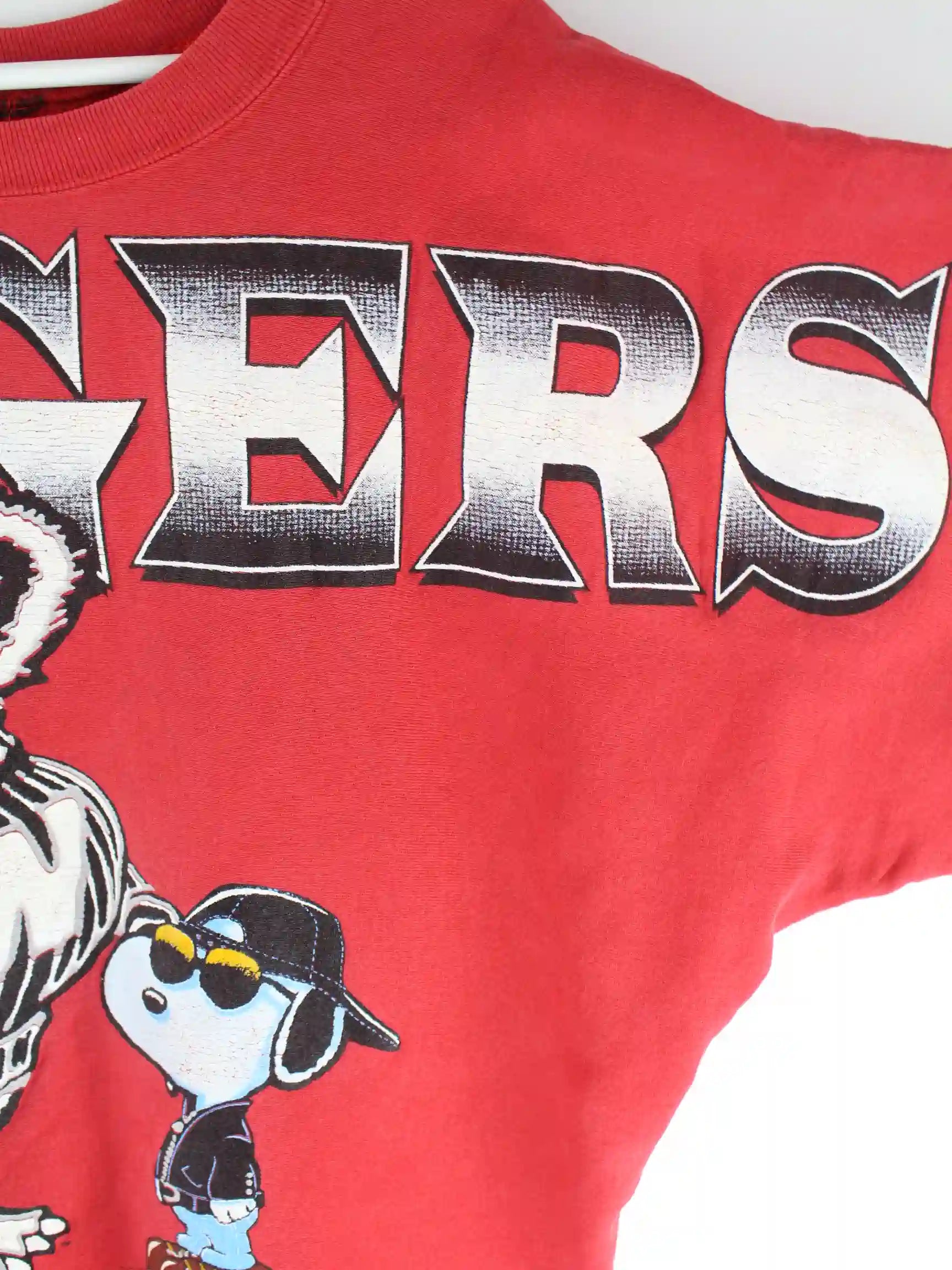 Roter Vintage Sweater aus den 90'ern in Größe XL. Er ist aus einer Baumwollmischung hergestellt und in sehr gutem Zustand auf Lager. Mit schönem Snoopy Print.