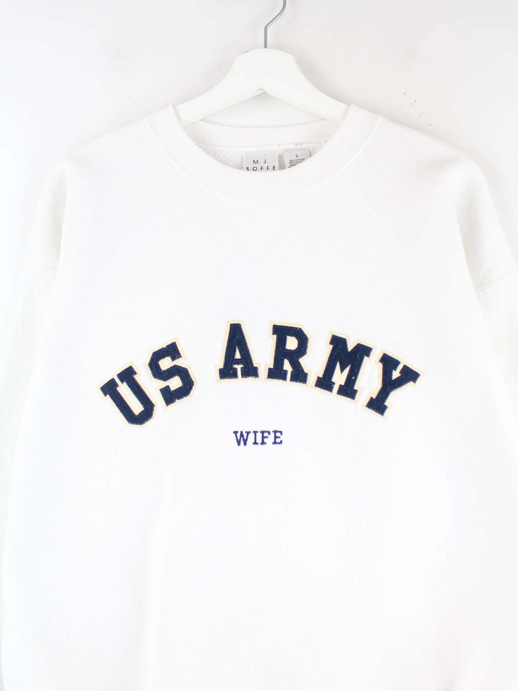 Vintage Sweater mit Stickereien in Größe L. Er ist aus einer Baumwollmischung gefertigt und in Weiß vorrätig.