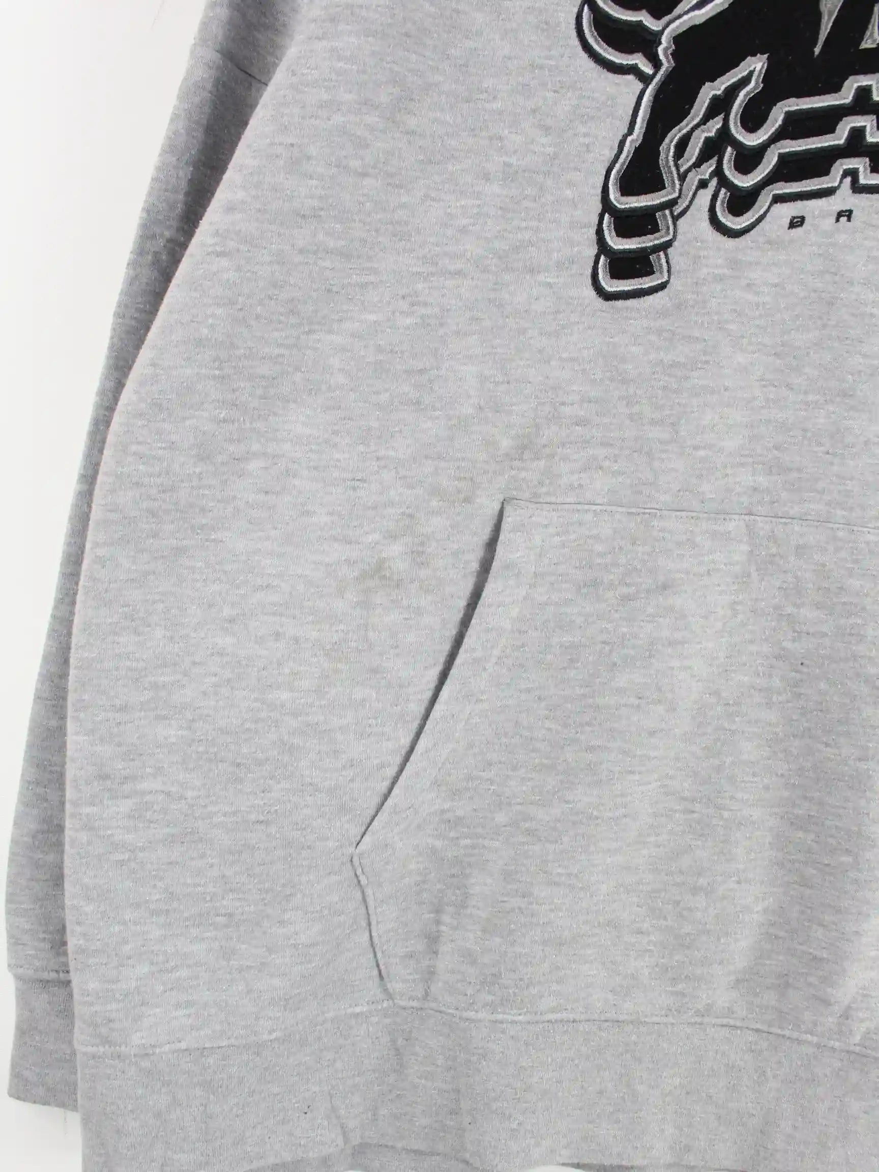 Grauer Vintage Hoodie aus Anfang der 2000'er in Größe XXL. Er ist aus einer Baumwollmischung gefertigt. Den Zustand würden wir als 'In Ordnung' bezeichnen (vergl. Bilder).