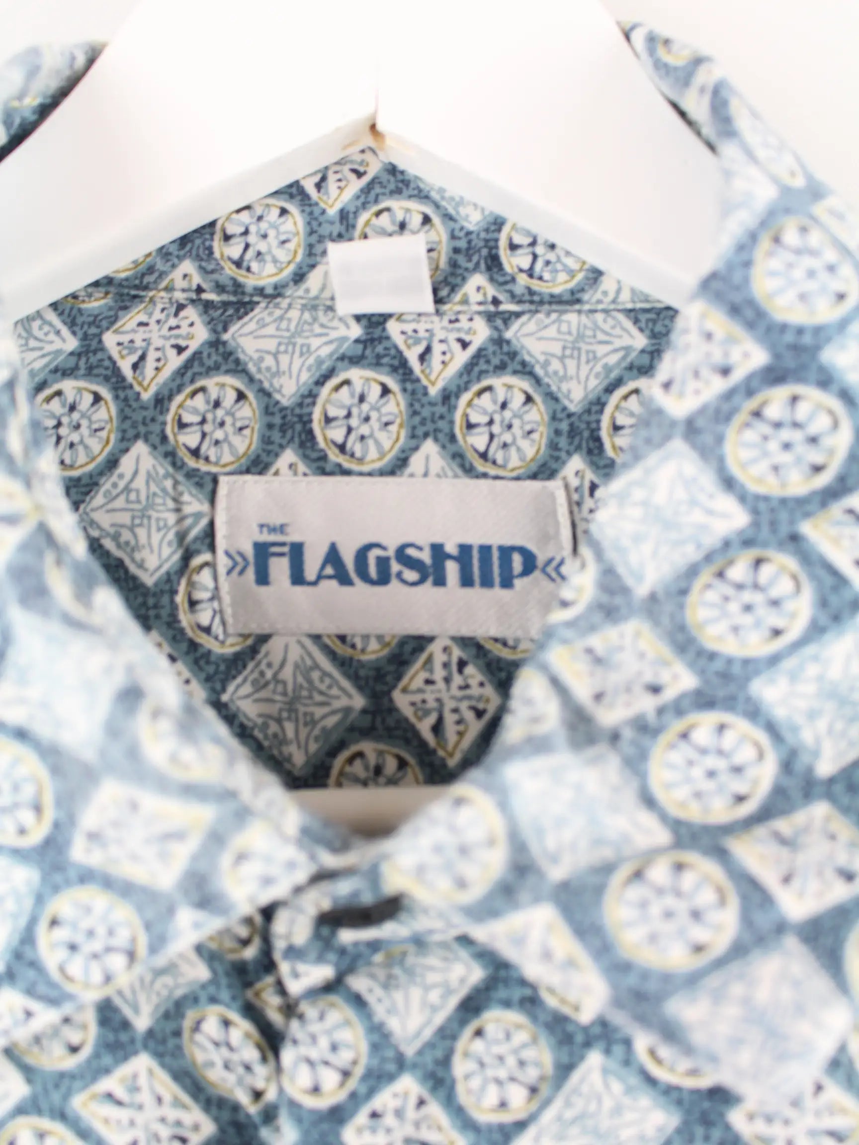 Vintage 90s Crazy Pattern Kurzarm Hemd Blau XL