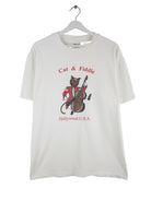 Hanes 90s Vintage Cat Print Single Stitch T-Shirt Weiß L