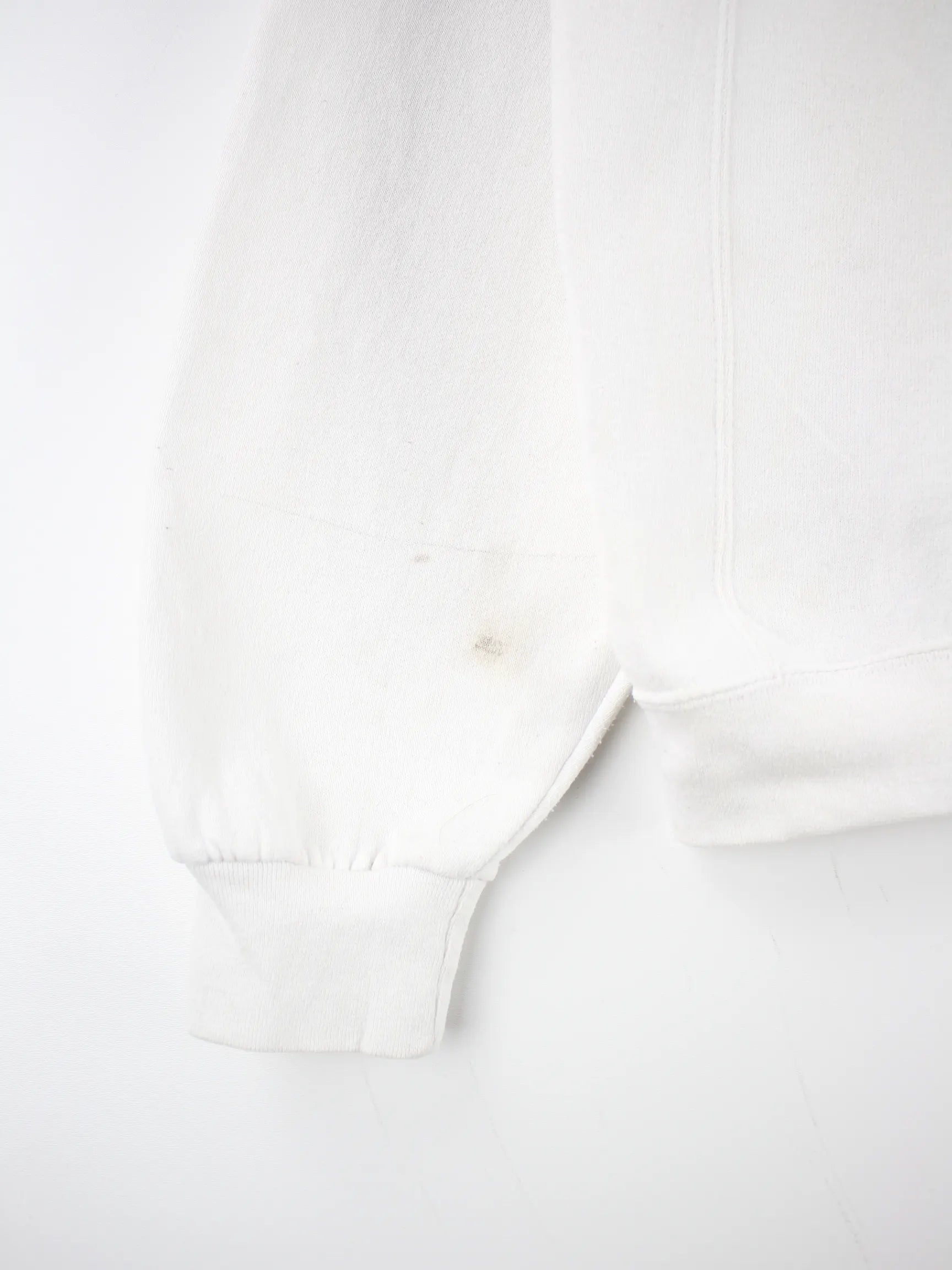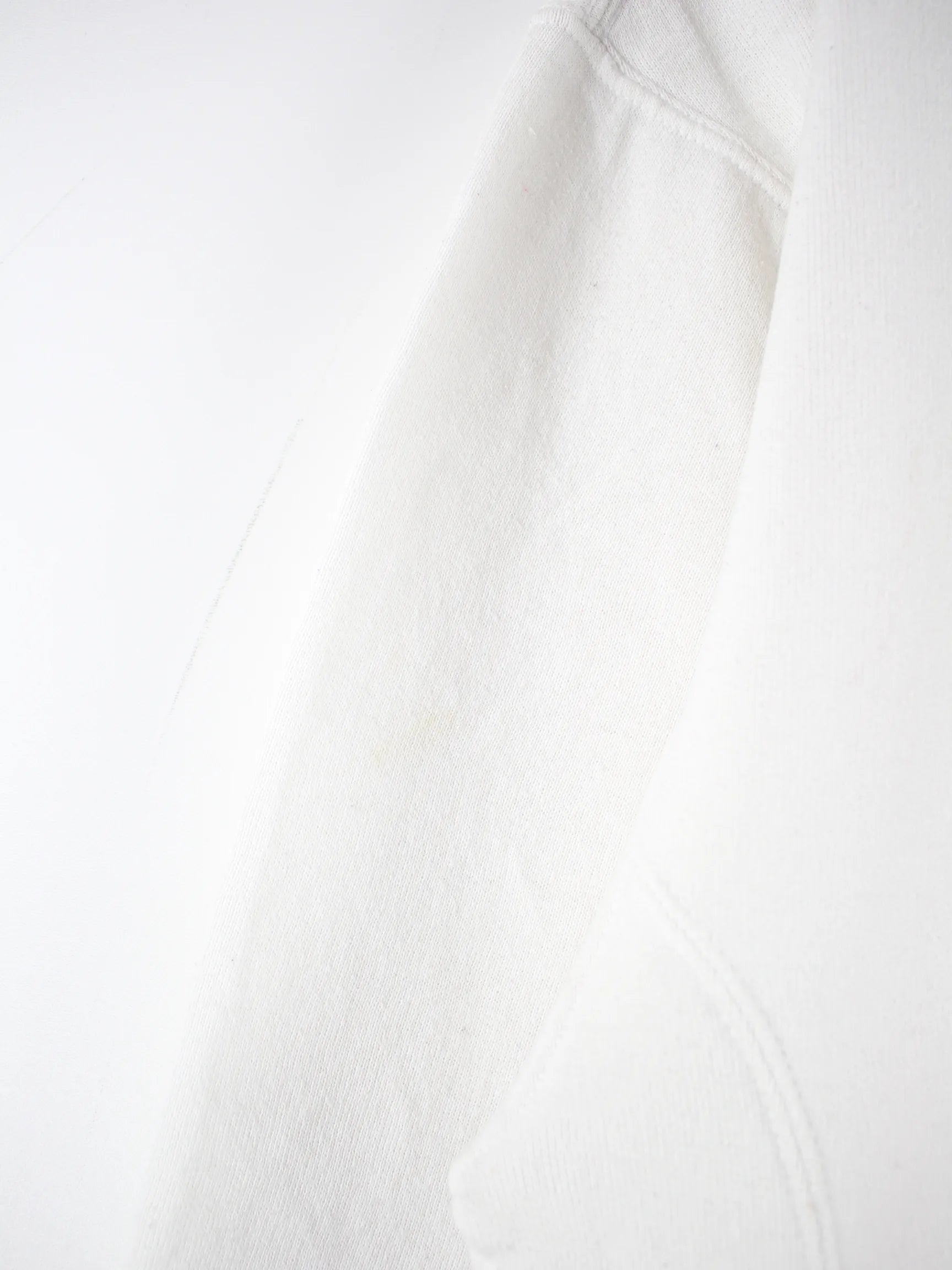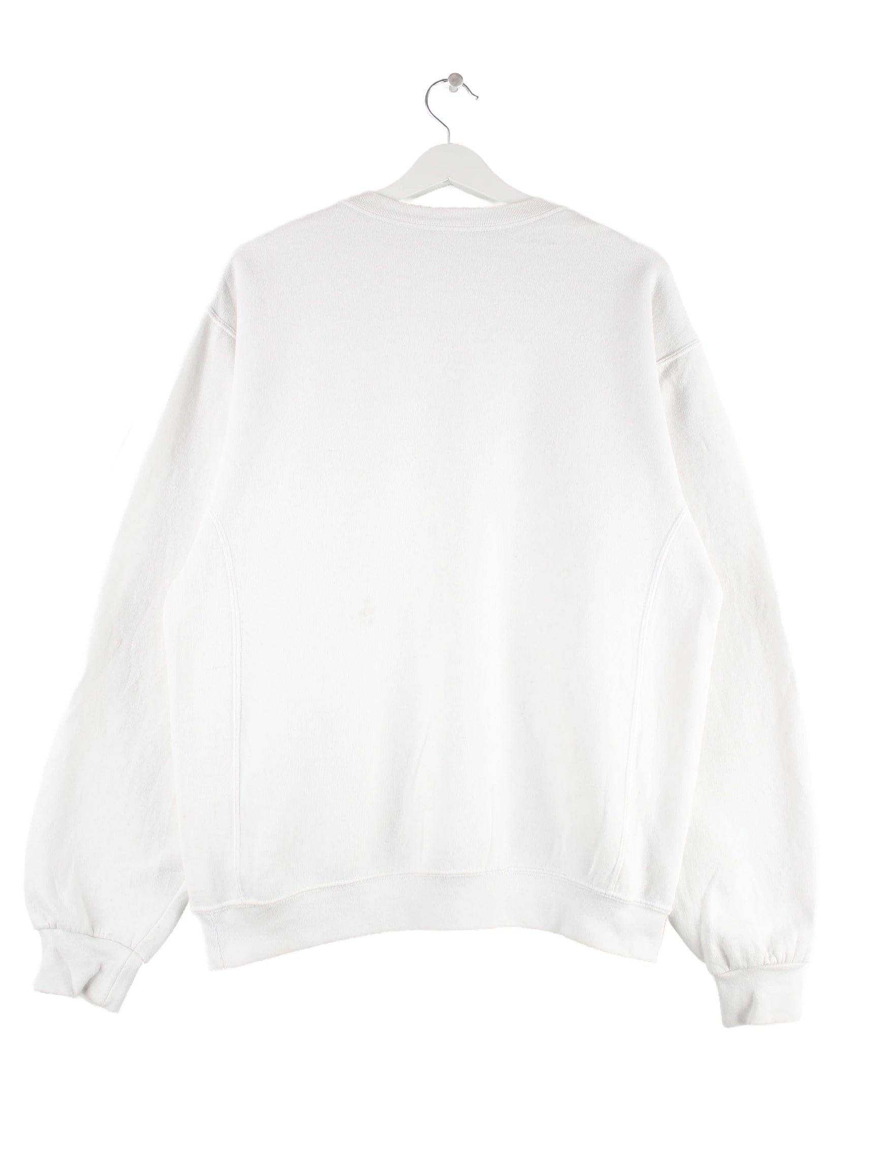 Sweater der Marke Russell Athletic in Größe L. Er ist aus einer Baumwollmischung gefertigt und in Weiß im Bestand. Mit seltenem Basketball Print.