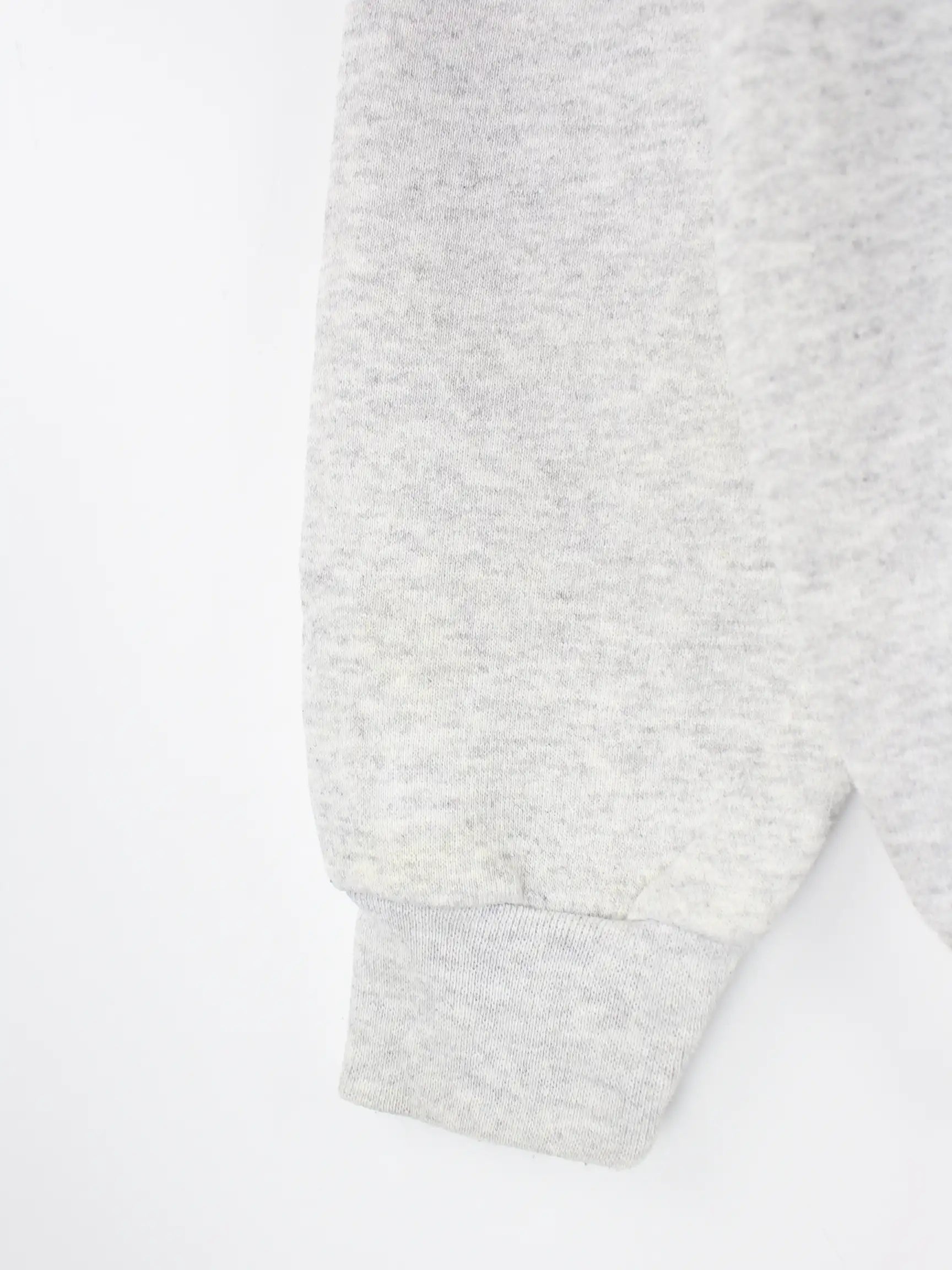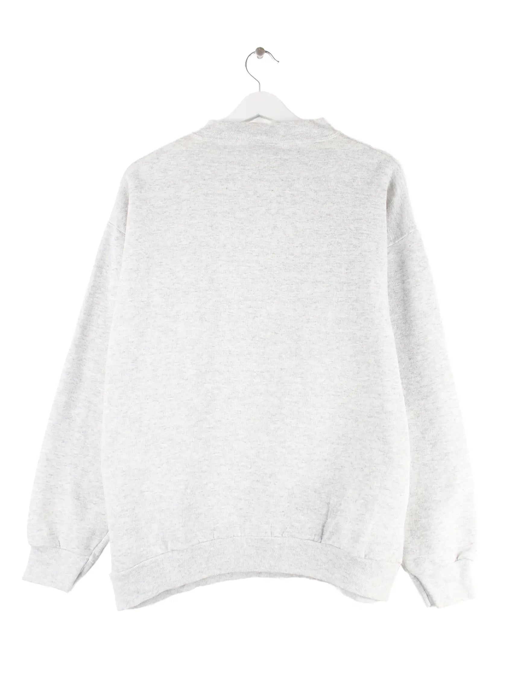 Vintage Sweater in Größe M. Er ist aus einer Baumwollmischung gefertigt und in Grau in Stock.