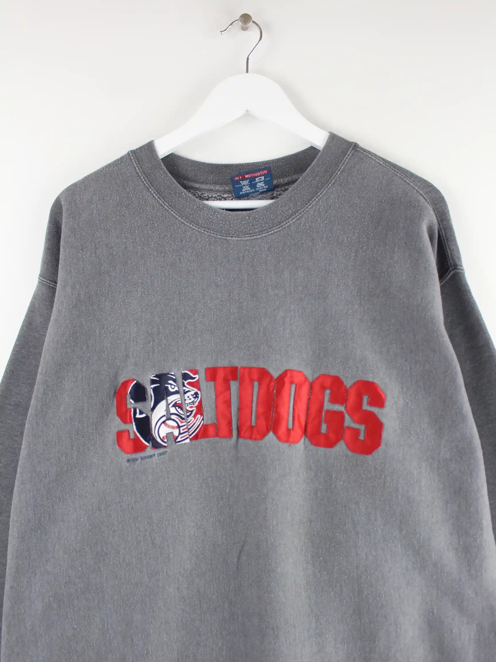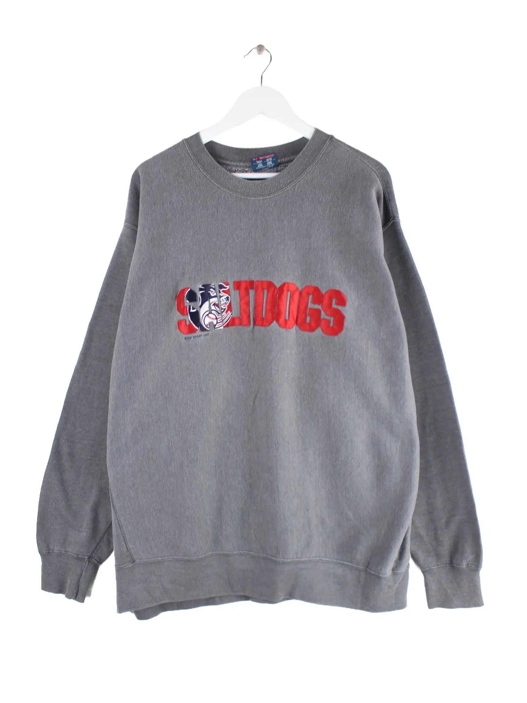 Vintage Sweater in Größe XXL. Er ist aus einer Baumwollmischung hergestellt und in Grau bei uns vorrätig.