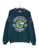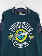 Grüner Vintage Sweater aus den 80'ern in Größe M. Er ist aus einer Baumwollmischung gemacht und in sehr gutem Zustand vorrätig. Mit schönem Pepsi Print.
