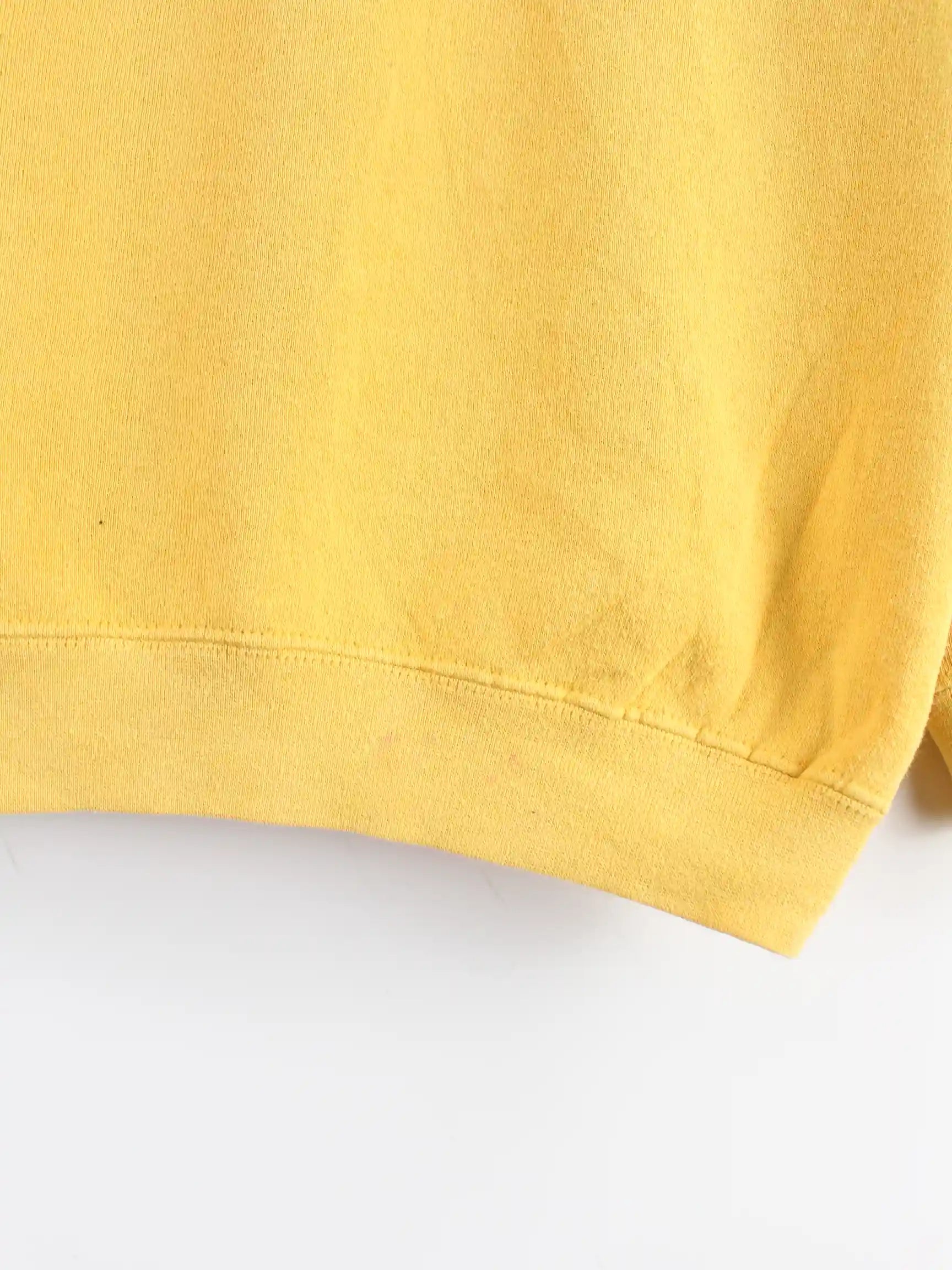 Vintage Sweater in Größe XL. Er ist aus einer Baumwollmischung gefertigt und in Gelb vorrätig.