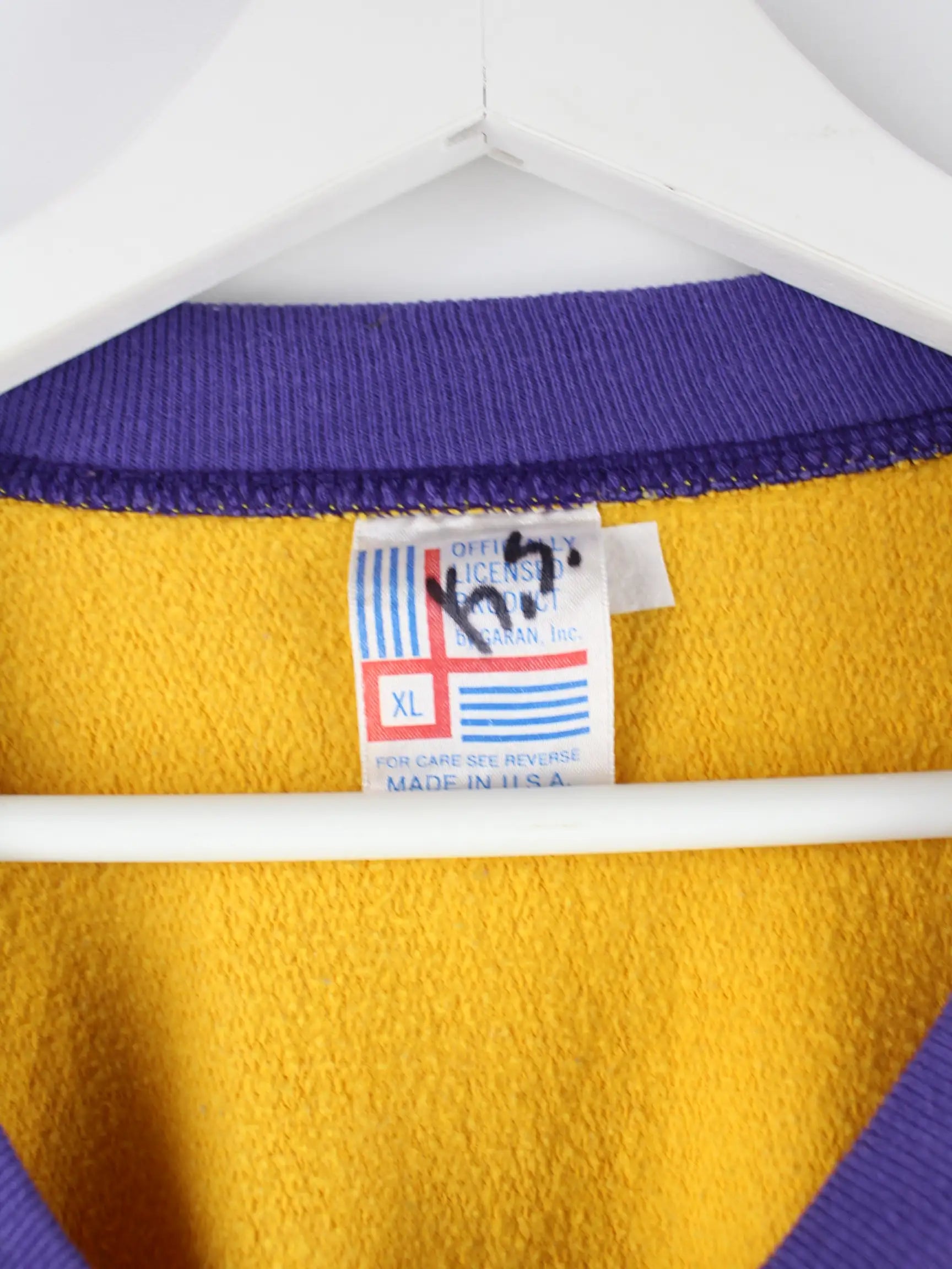 Vintage NFL Sweater in Größe XL aus den 80er Jahren. Er ist aus einer Baumwollmischung und in Lila im Angebot. Mit schickem Vikings Print.
