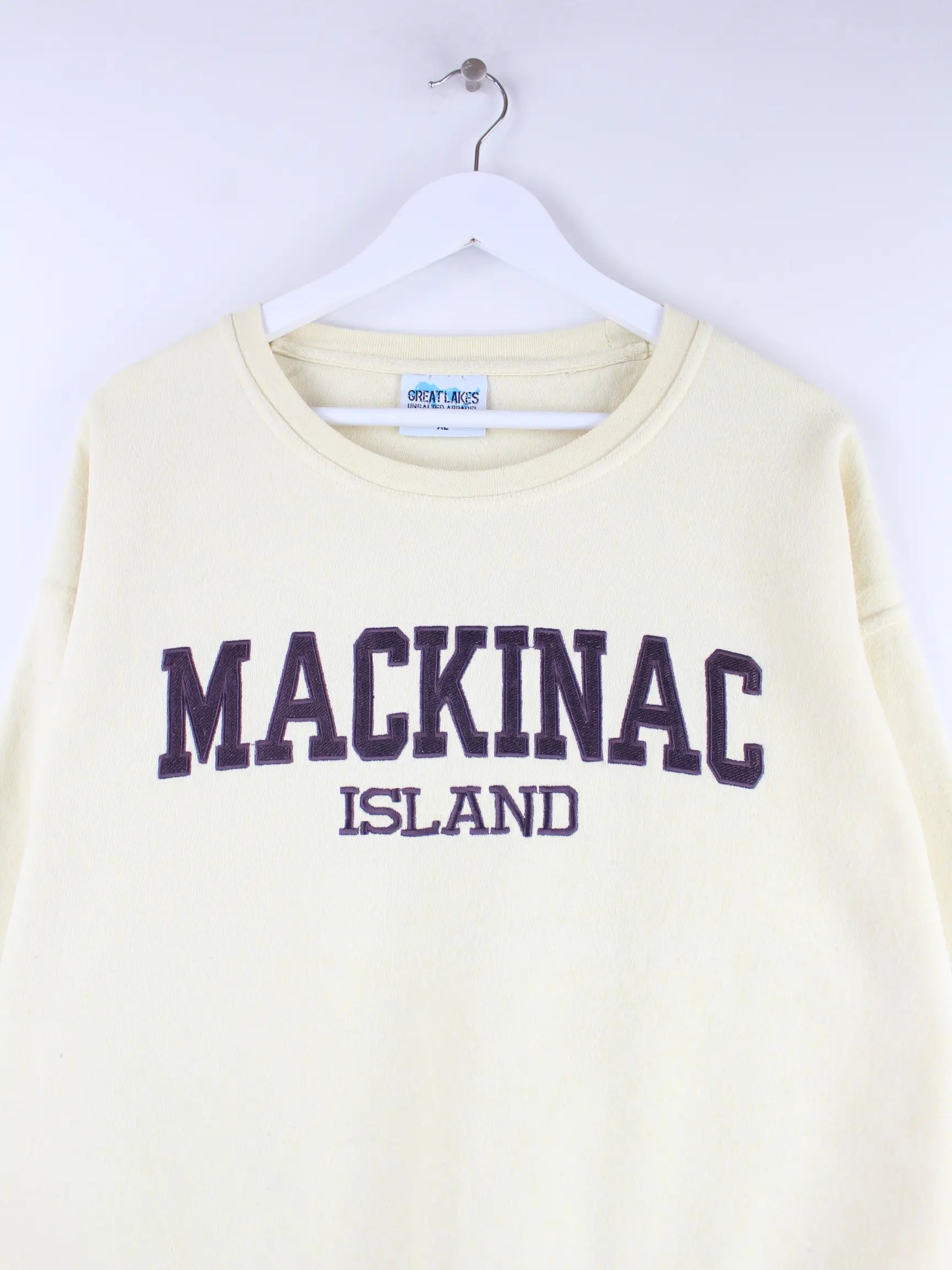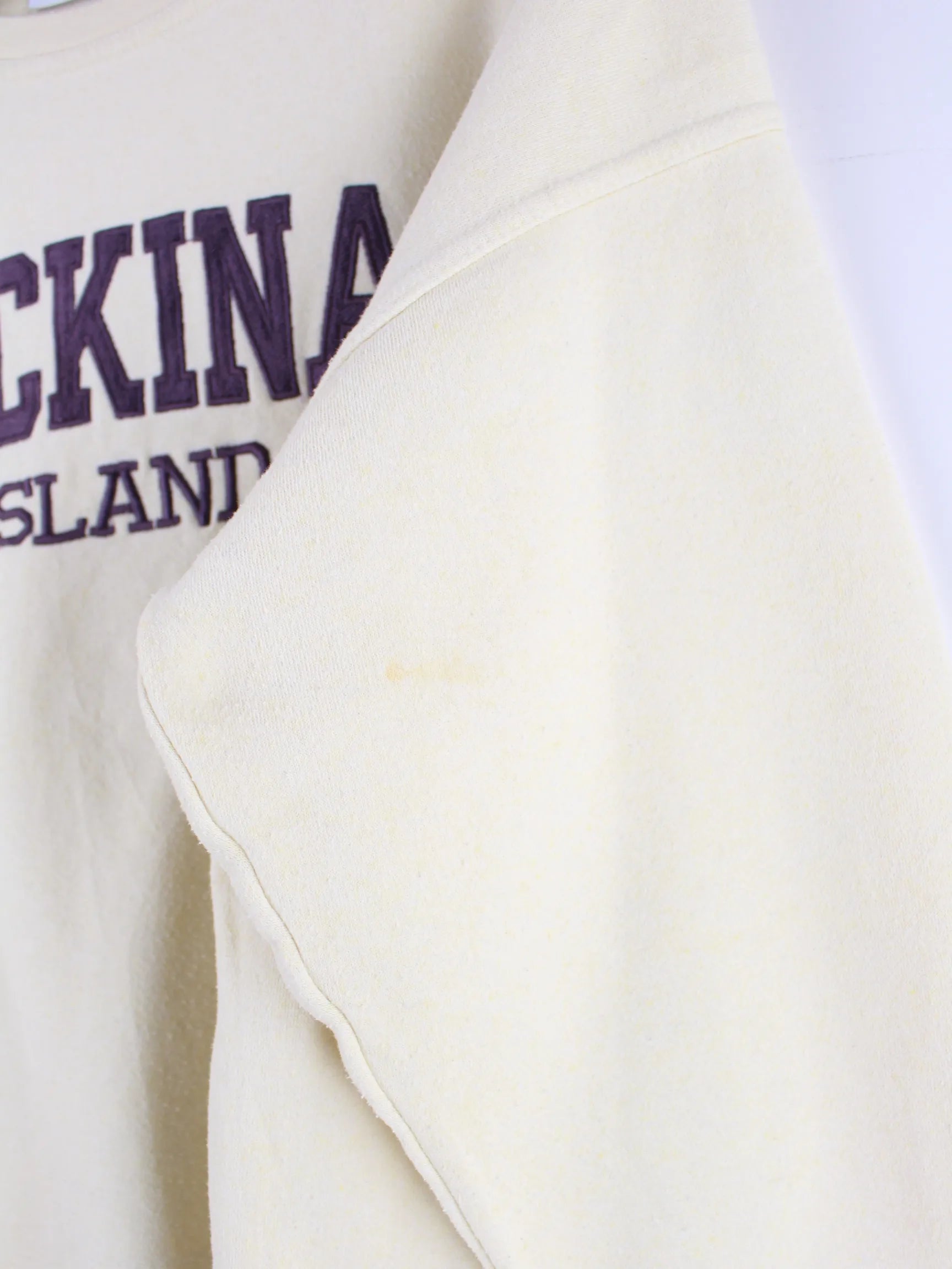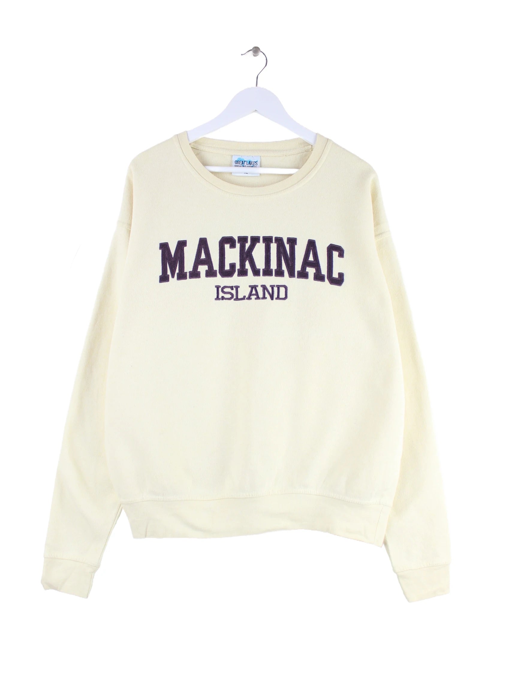 Vintage Sweater in Größe XL. Er ist aus einer Baumwollmischung und in Beige auf Lager.
