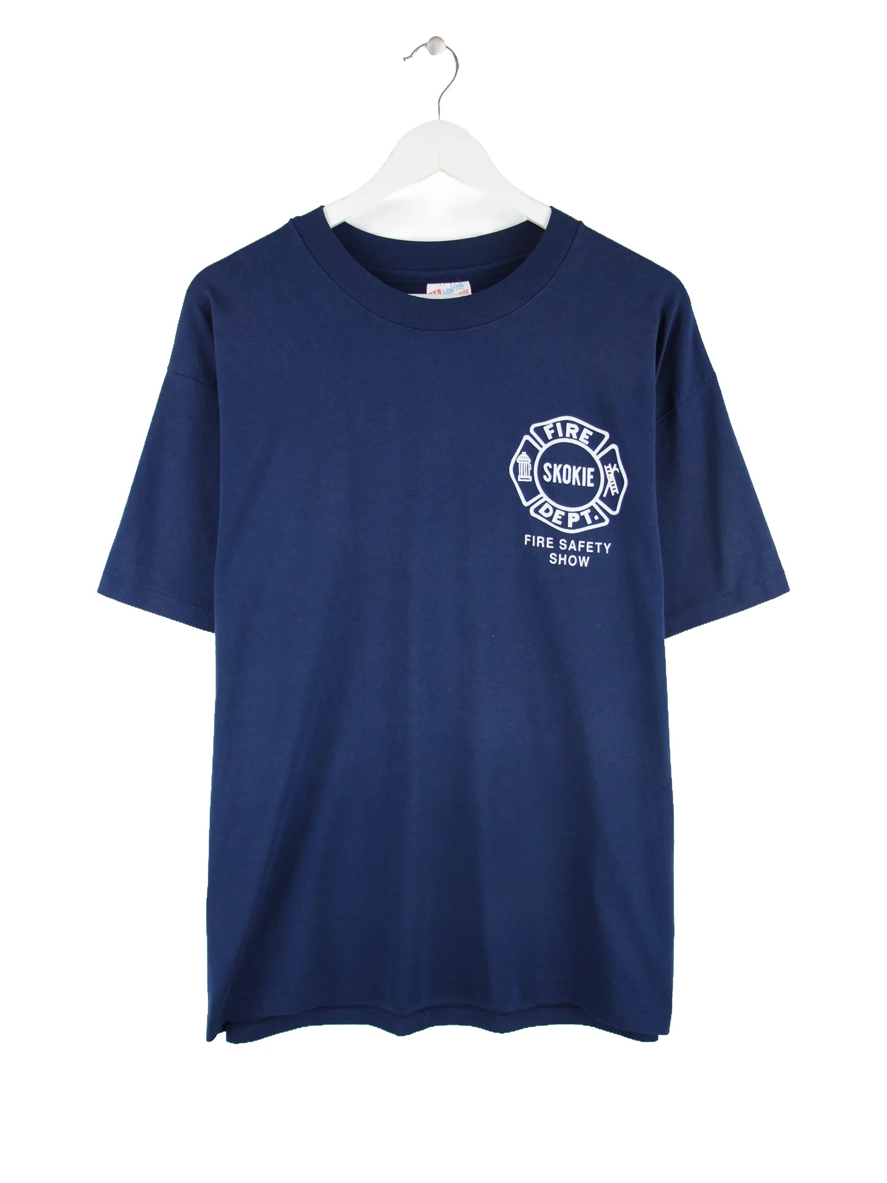 Hanes 00s Fire Department Print Single Stitch T-Shirt Blau XL
