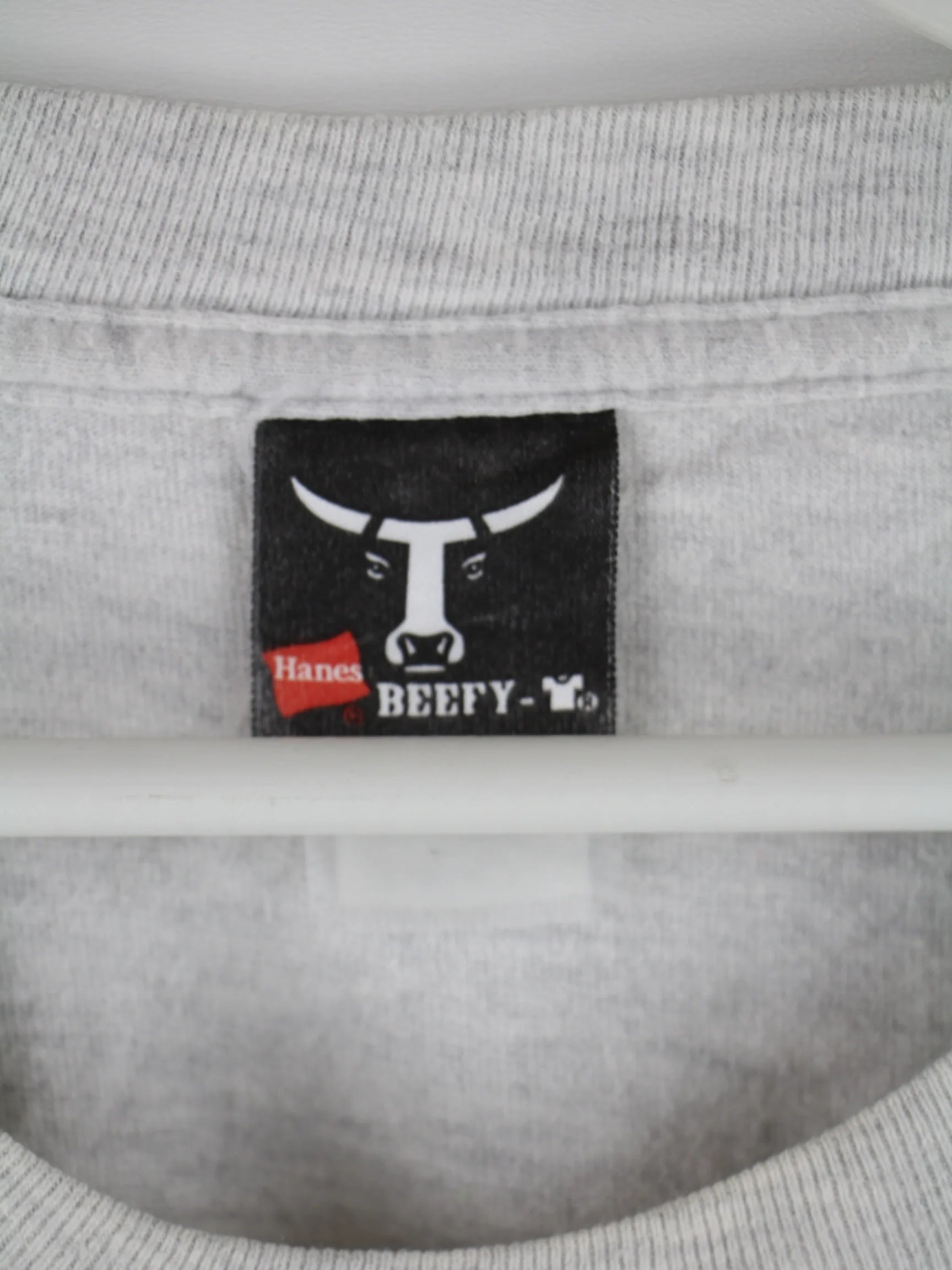 Graues T-Shirt vom Label Hanes in Größe XXL. Es ist aus Baumwolle und in sehr gutem Zustand im Angebot. Mit seltenem Racing Print.
