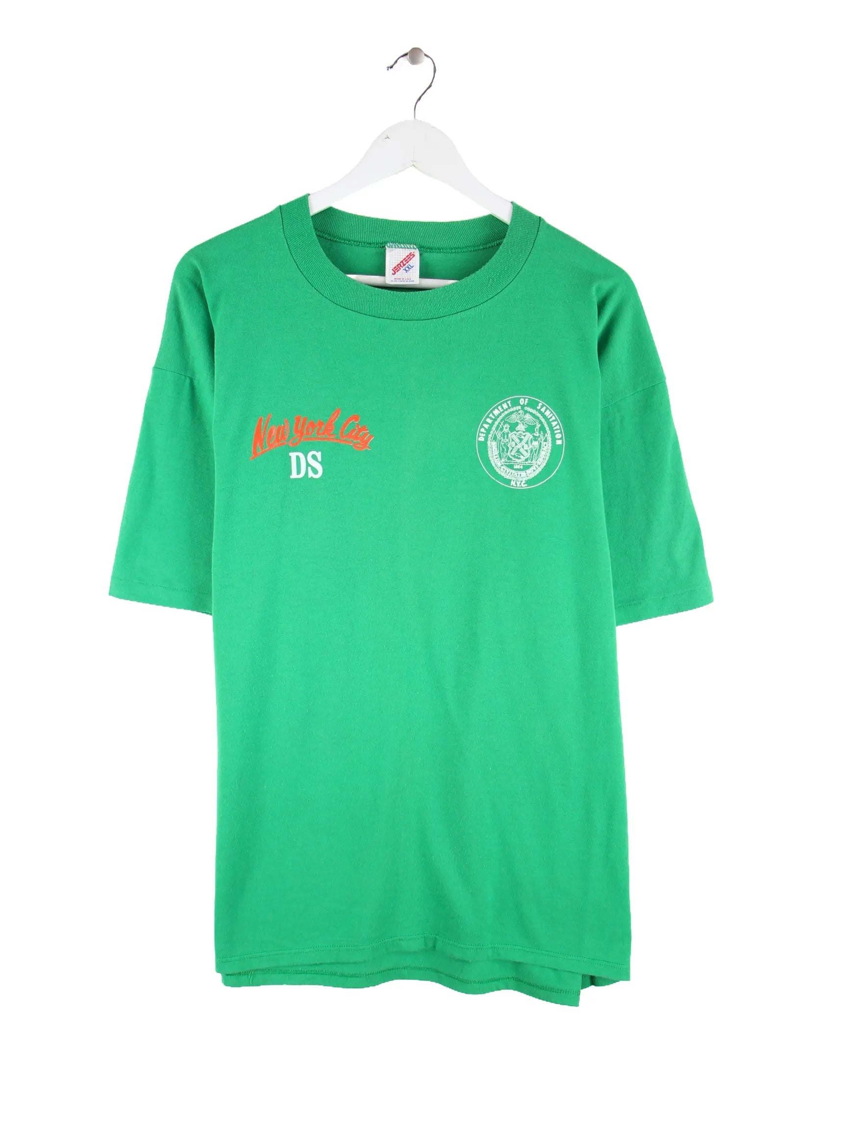 Jerzees 90s Vintage Sanitation Department NYC Print Single Stitch T-Shirt Grün XXL