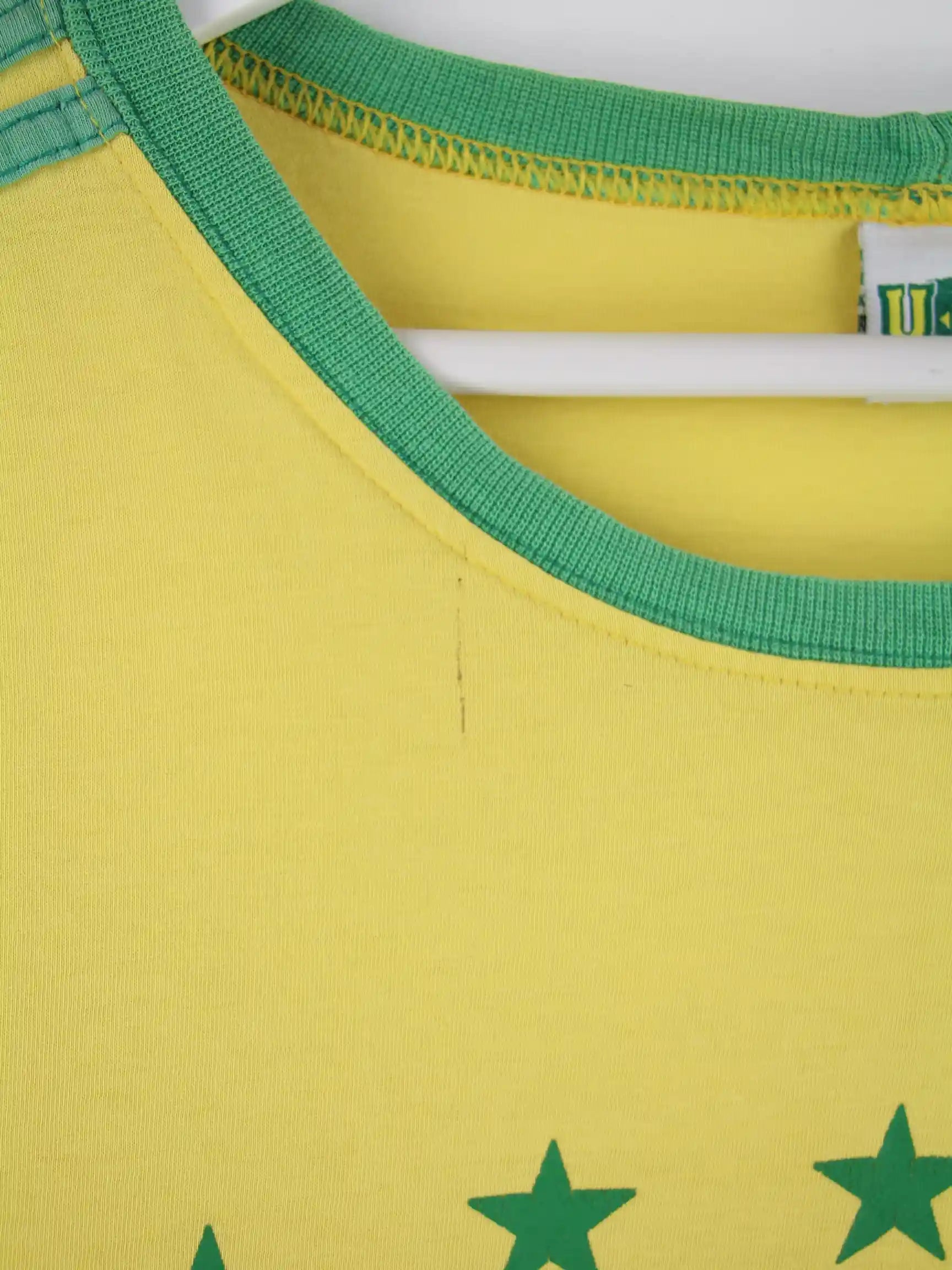 Gelbes Vintage T-Shirt in Größe S. Es ist aus Baumwolle hergestellt und in gutem Zustand zu bekommen. Mit schickem Brazil Print.