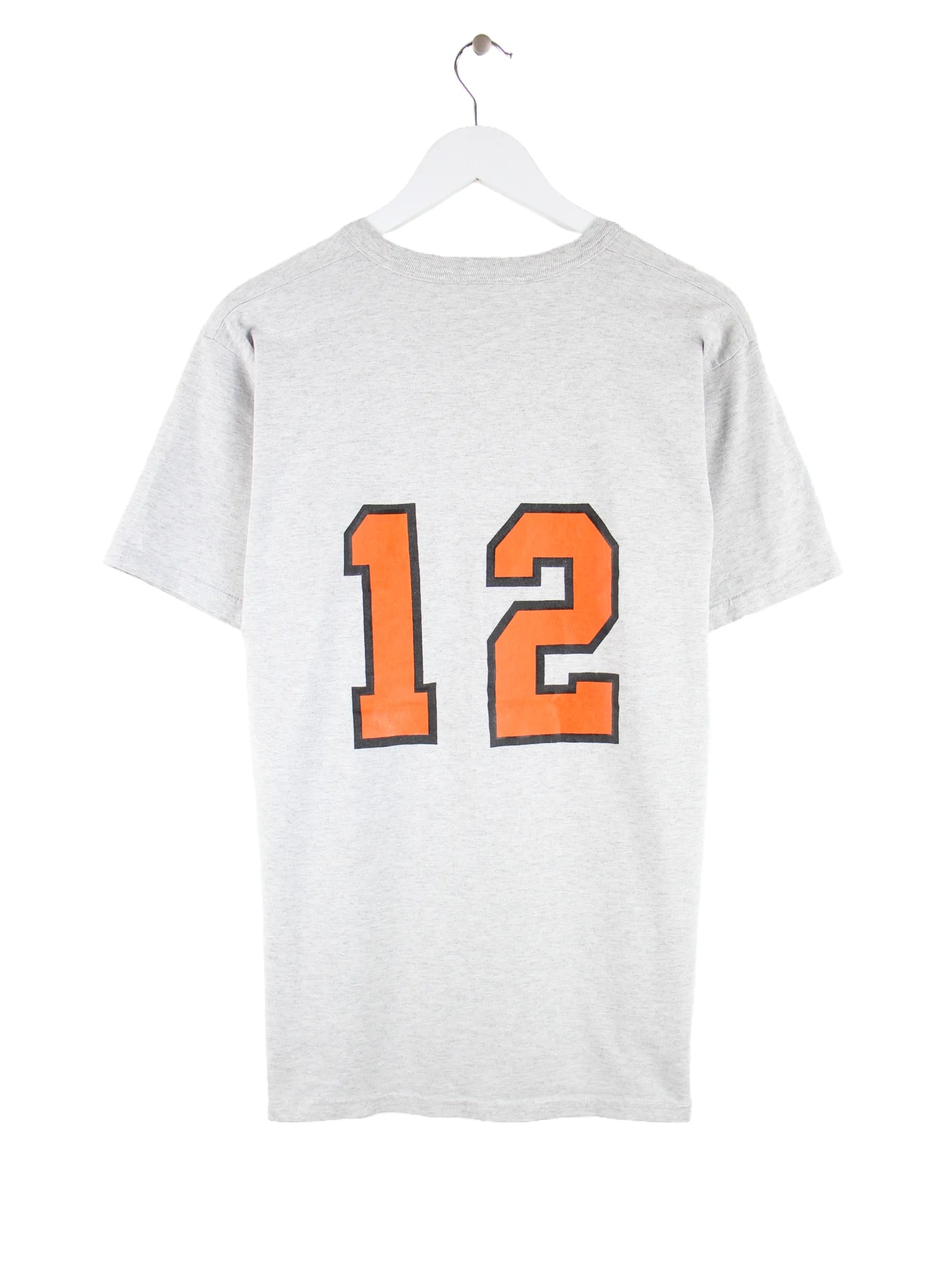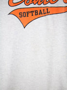 Vintage T-Shirt in Größe L. Es ist aus Baumwolle und in Grau auf Lager. Mit seltenem Softball Print.