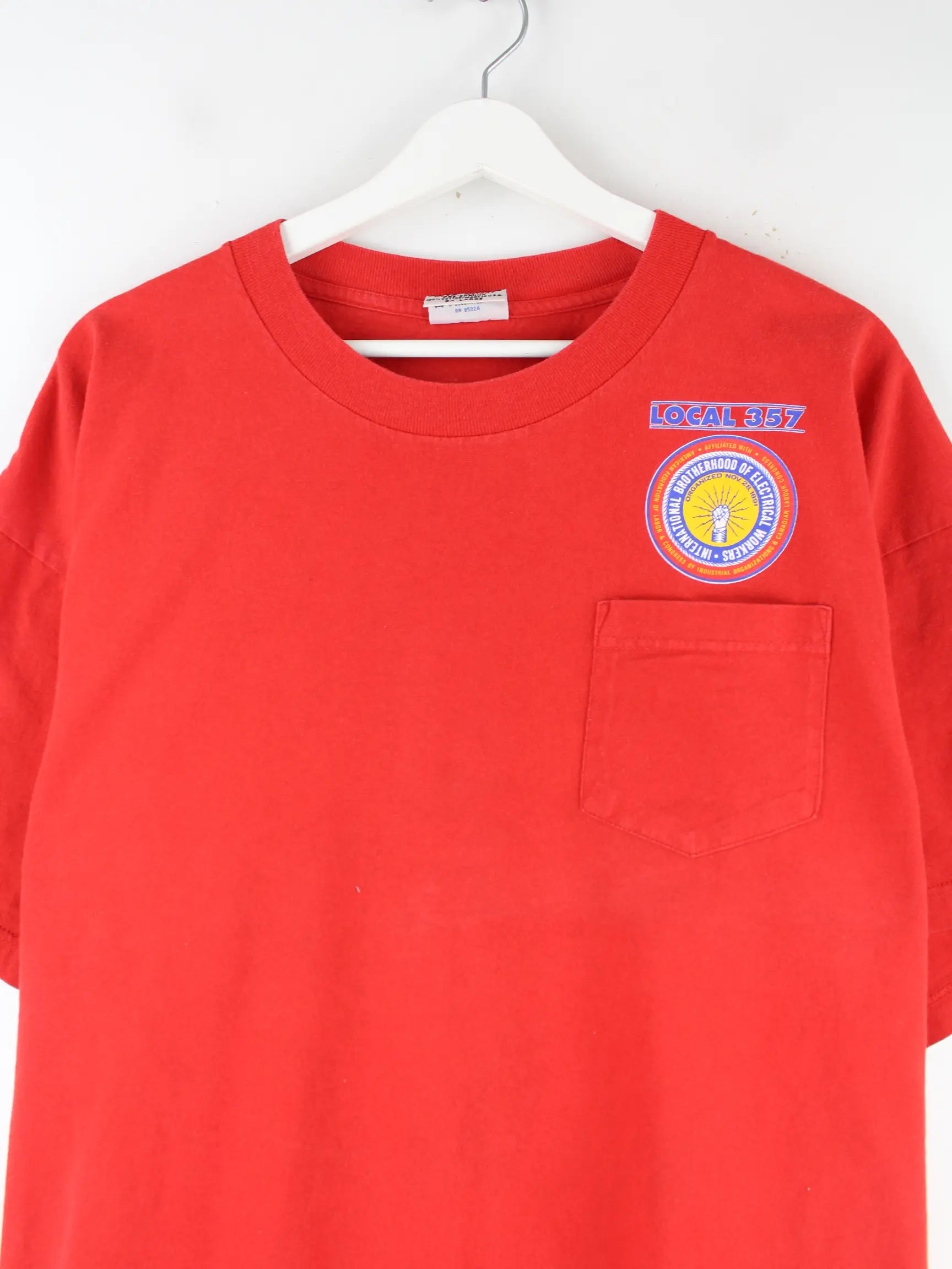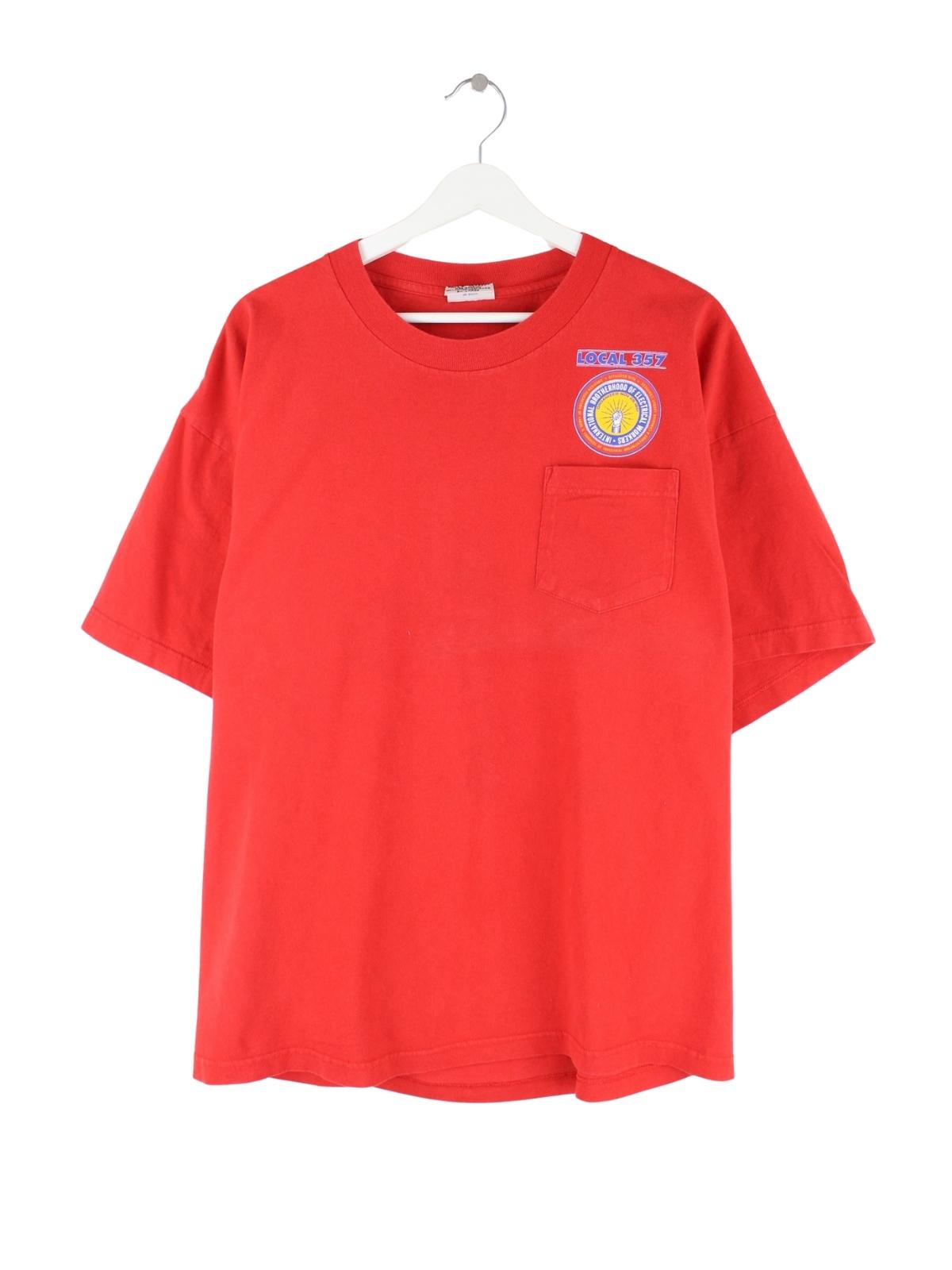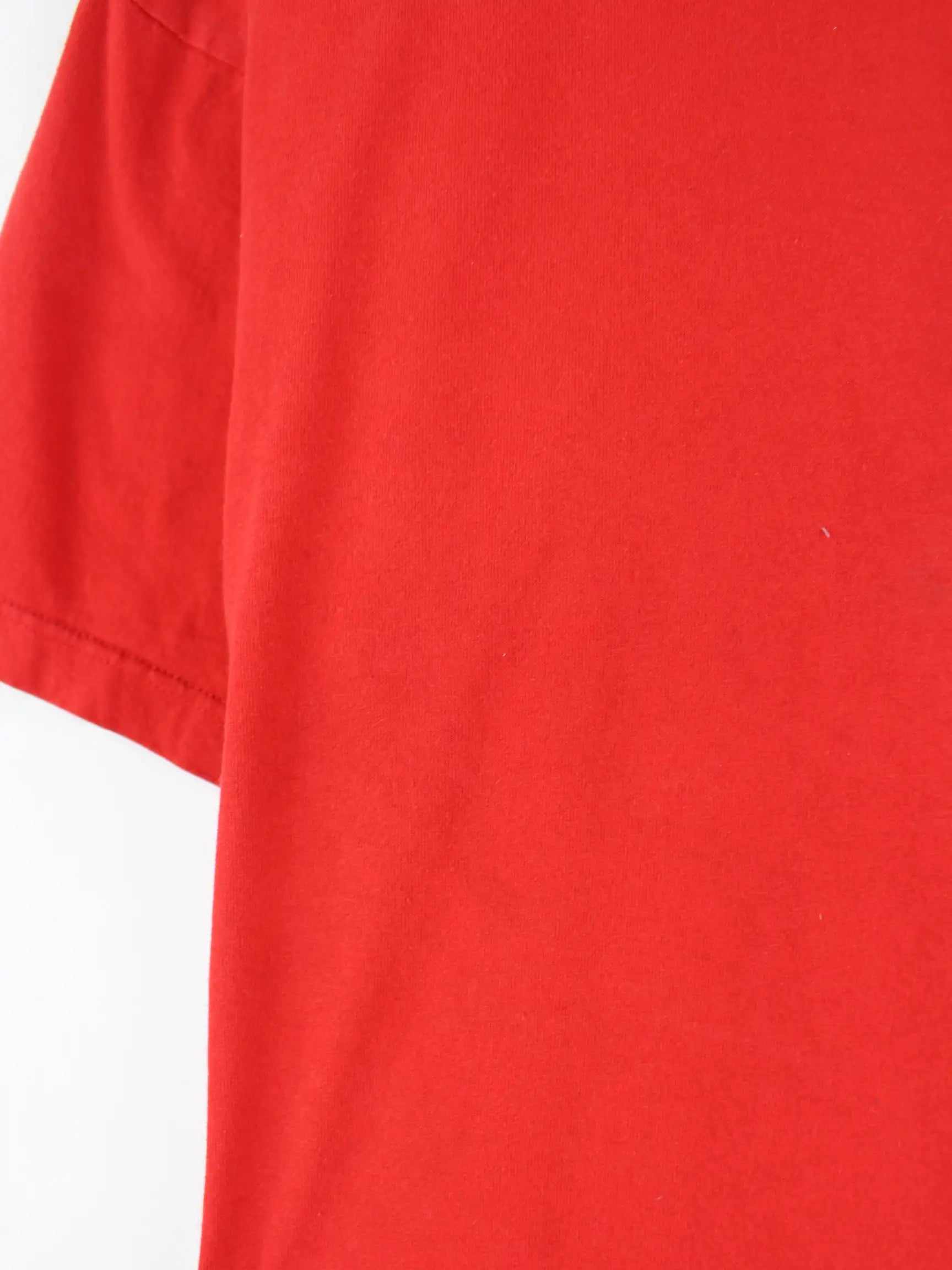 Rotes Vintage T-Shirt aus den 90'ern in Größe XXL. Es ist aus Baumwolle . Den Zustand würden wir als 'In Ordnung' bezeichnen (vergl. Bilder).Mit schickem Fighters Print.