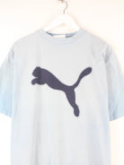 T-Shirt vom Label Puma in Größe L. Es ist aus Baumwolle gemacht und in Blau in Stock. Mit schickem Logo Print.
