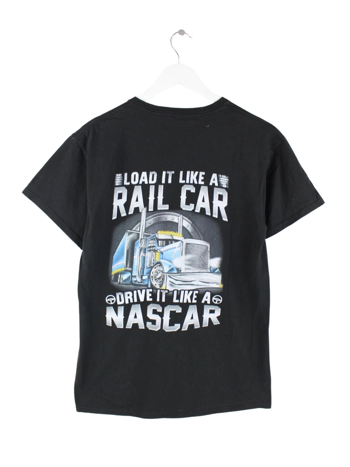 Vintage T-Shirt in Größe M. Es ist aus Baumwolle gefertigt und in Schwarz vorrätig. Mit chiquem Nascar Print.