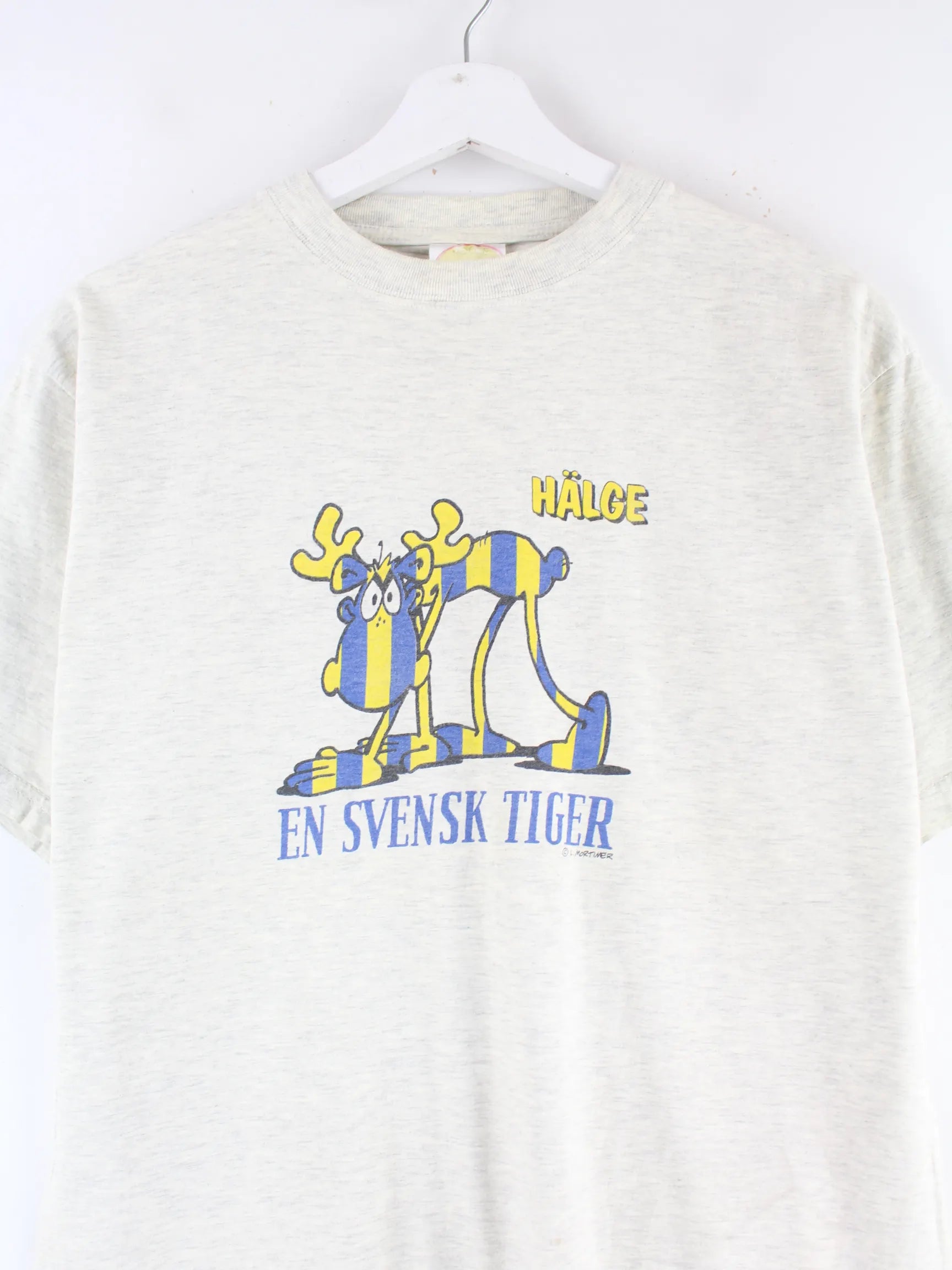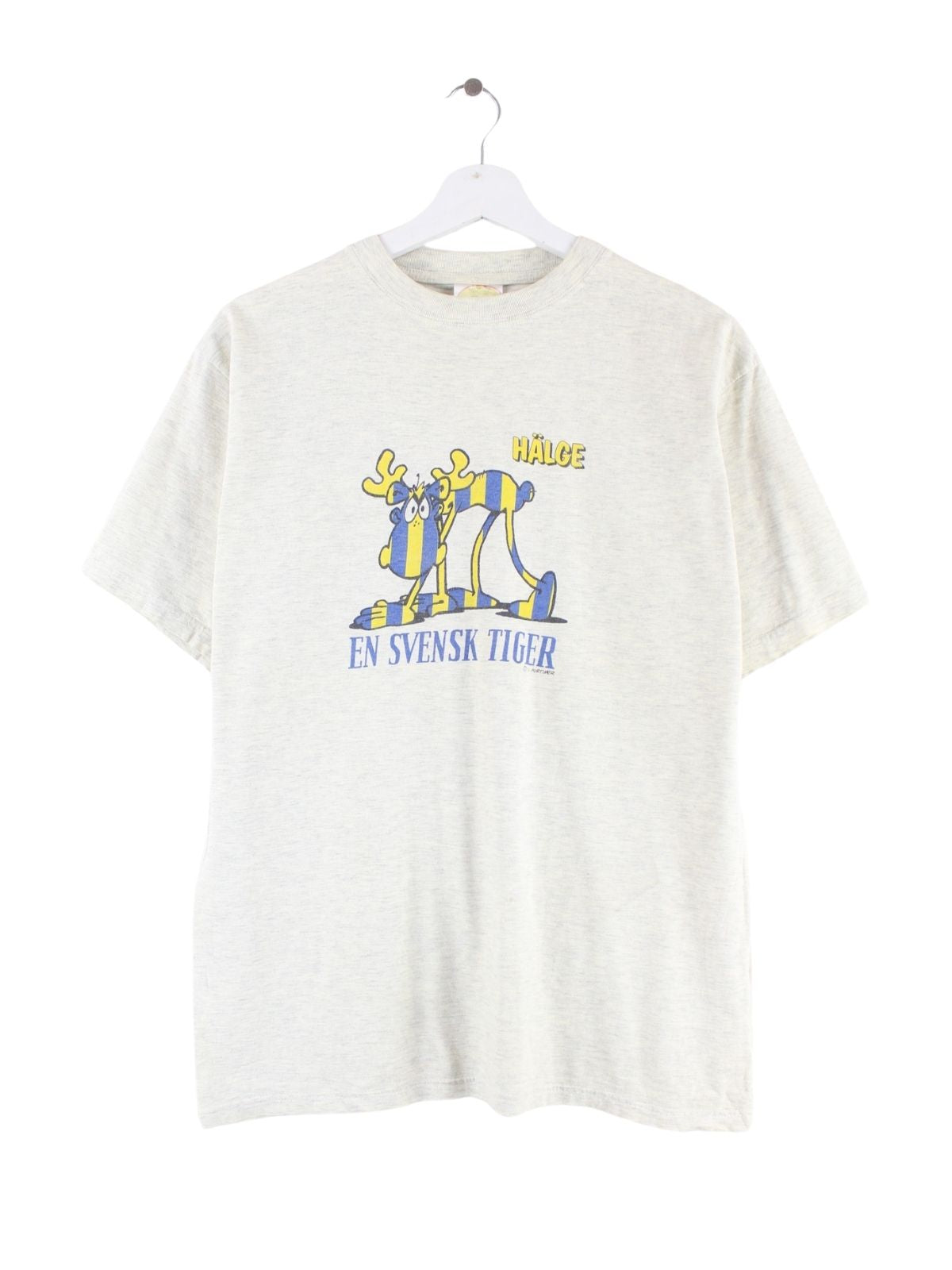 Vintage 90s Sweden Moose Print T-Shirt Grau XS