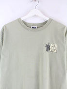 Grünes Vintage T-Shirt in Größe L. Es ist aus einer Baumwollmischung gefertigt und in sehr gutem Zustand bei uns vorrätig. Mit tollem Rule Print.