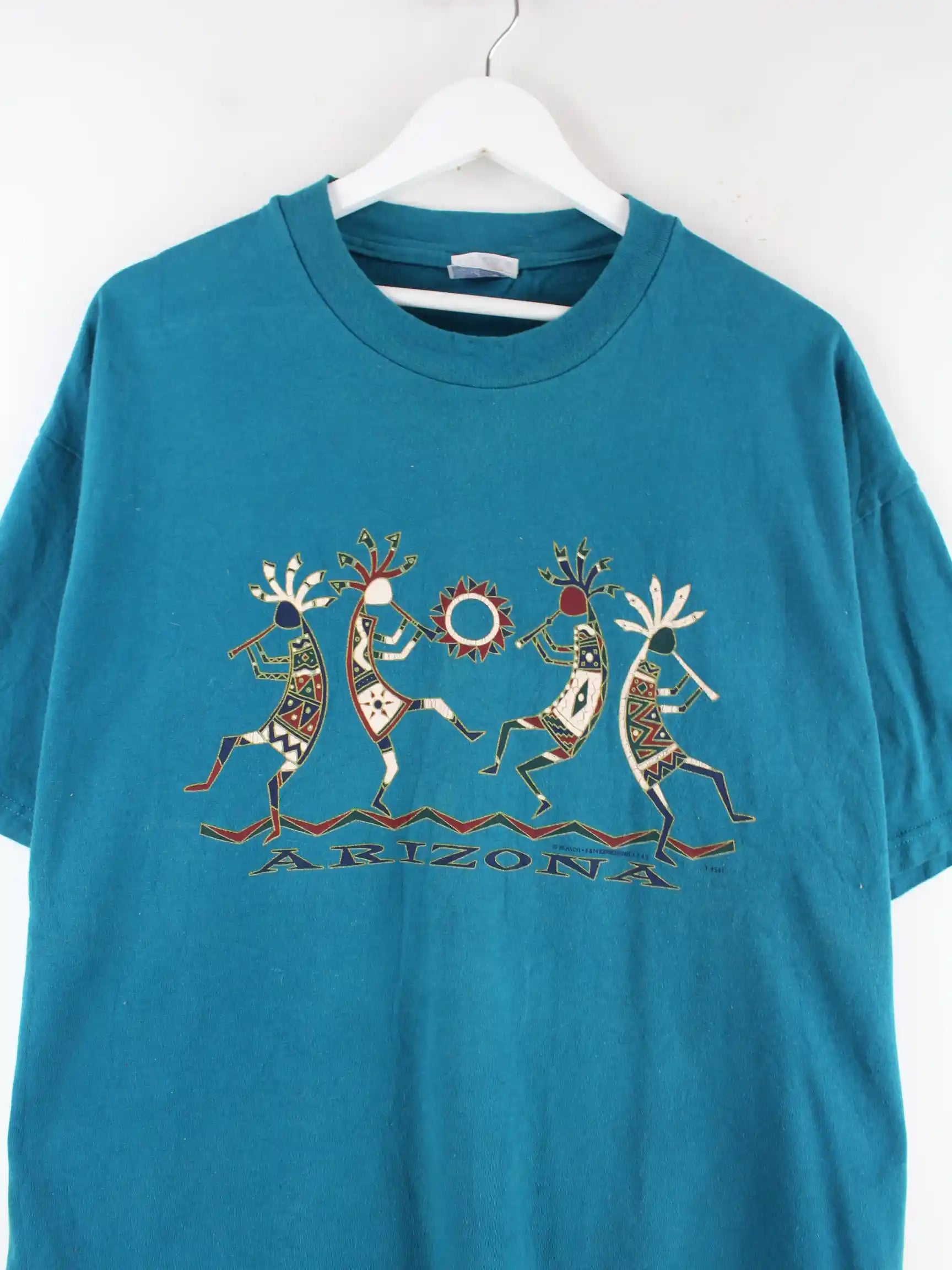 Vintage 90s Philipines Print Single Stitch T-Shirt Blau L