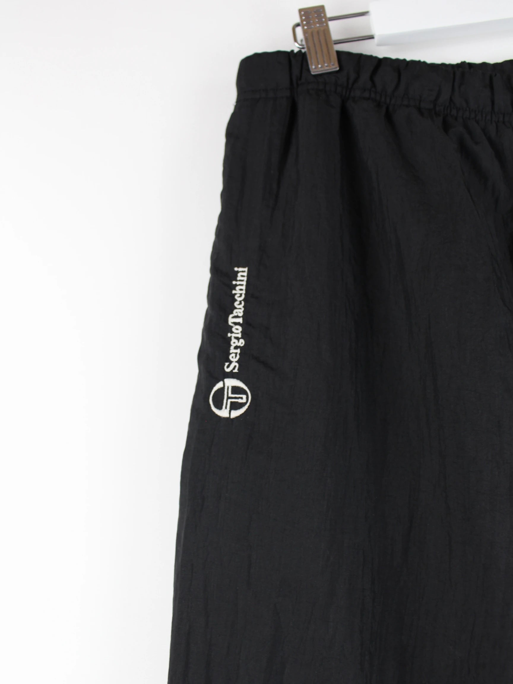 Track Pants der Marke Sergio Tacchini in Größe XXL aus den 90'ern. Sie sind aus Synthetik gefertigt und in Schwarz bei uns vorrätig.
