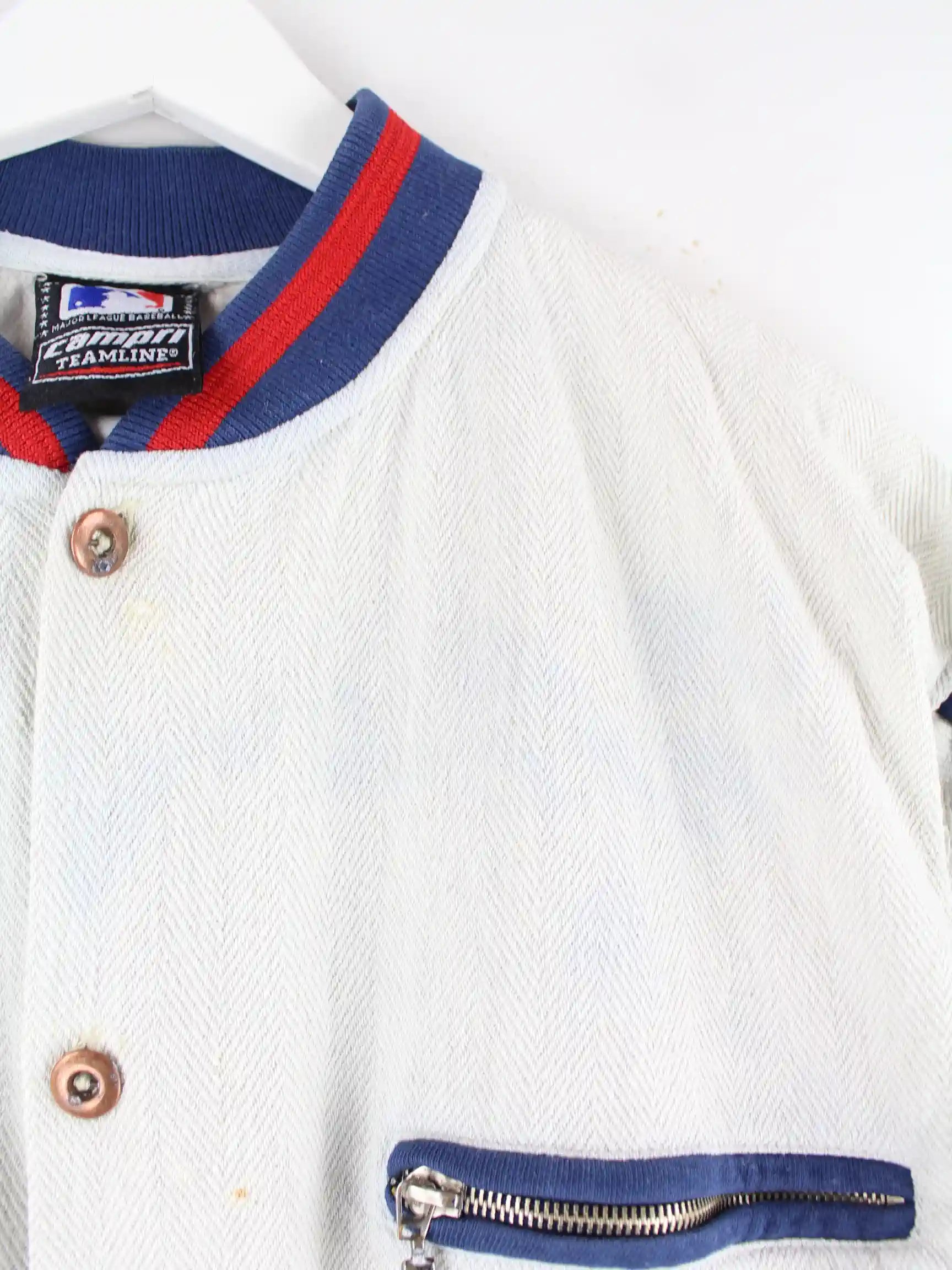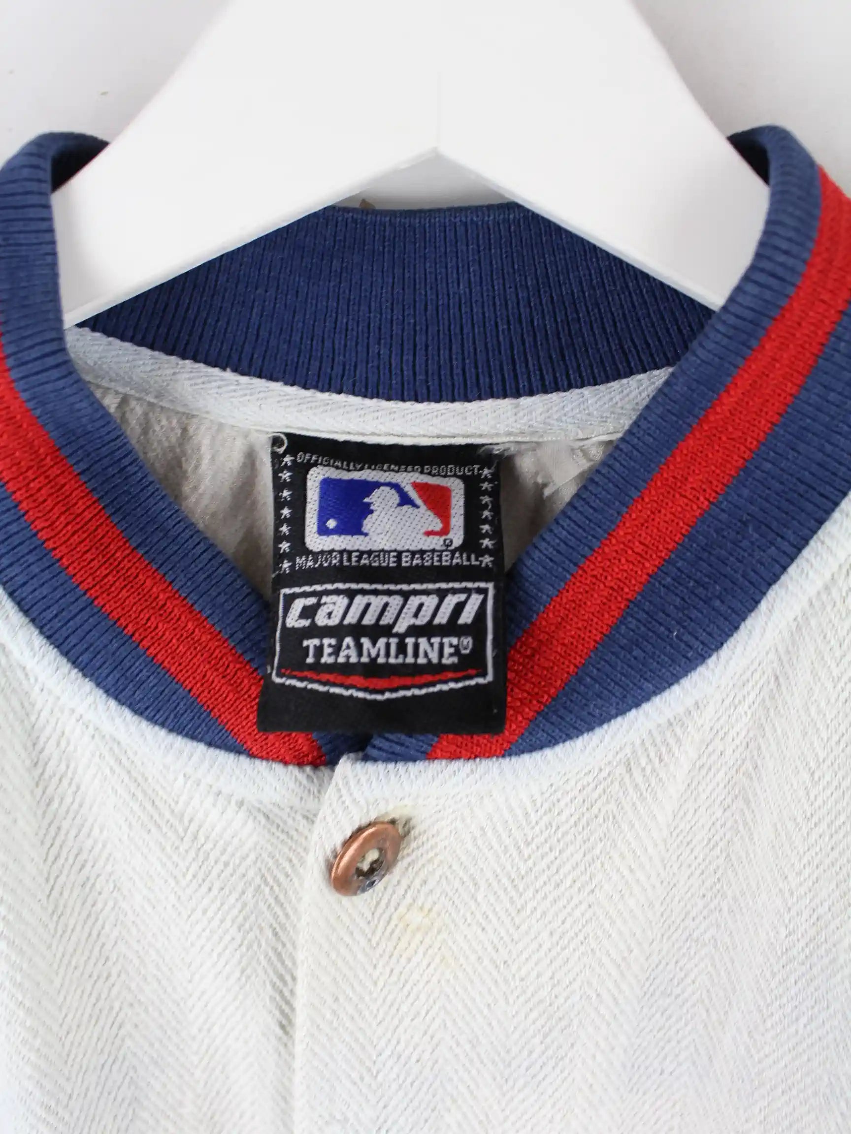 Beigefarbener Jersey von MLB aus den 90'ern in Größe XL. Es ist aus einer Baumwollmischung hergestellt. Den Zustand würden wir als 'In Ordnung' bezeichnen (vergl. Bilder).Mit chiquem Yankees Print.