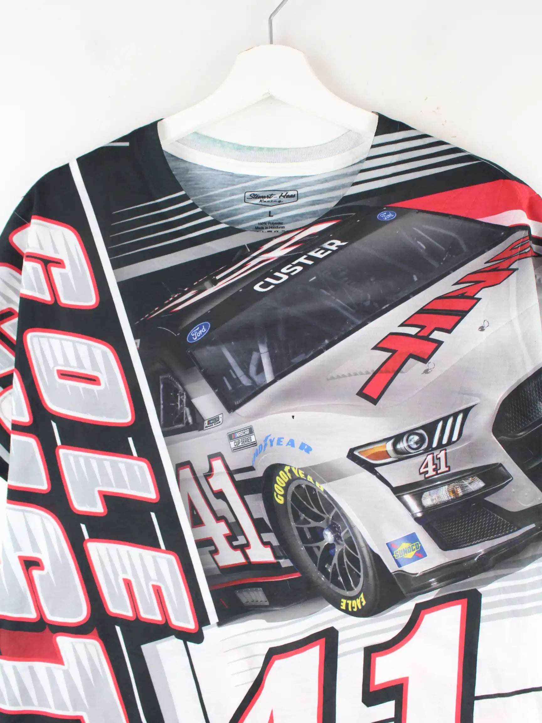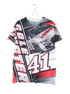Vintage Trikot in Größe L. Es ist aus Synthetik gefertigt und in bunten Farben zu haben. Mit schönem Racing Print.