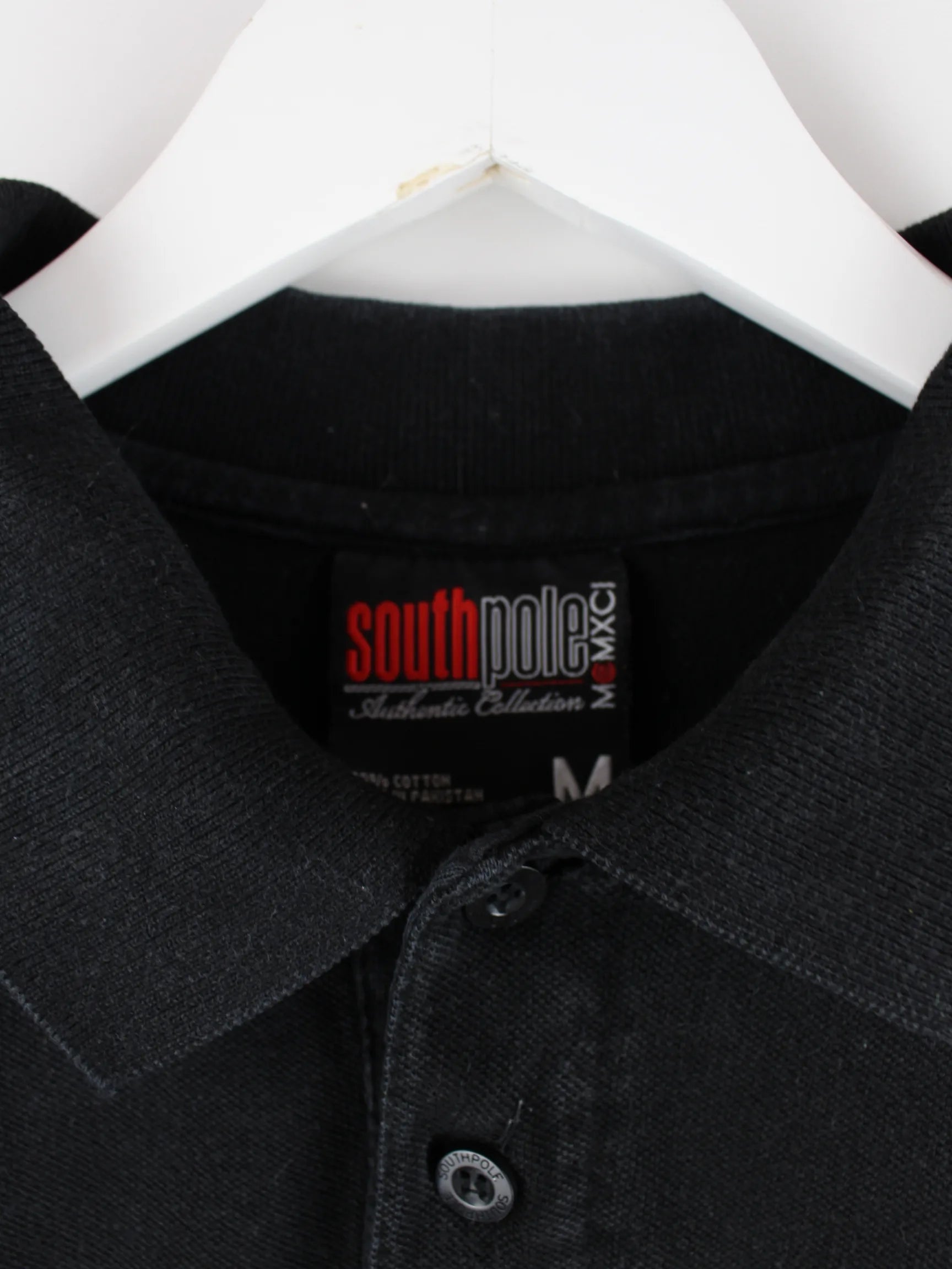 Schwarzes Poloshirt von Southpole in Größe M. Es ist aus Baumwolle hergestellt und in gutem Zustand im Angebot.