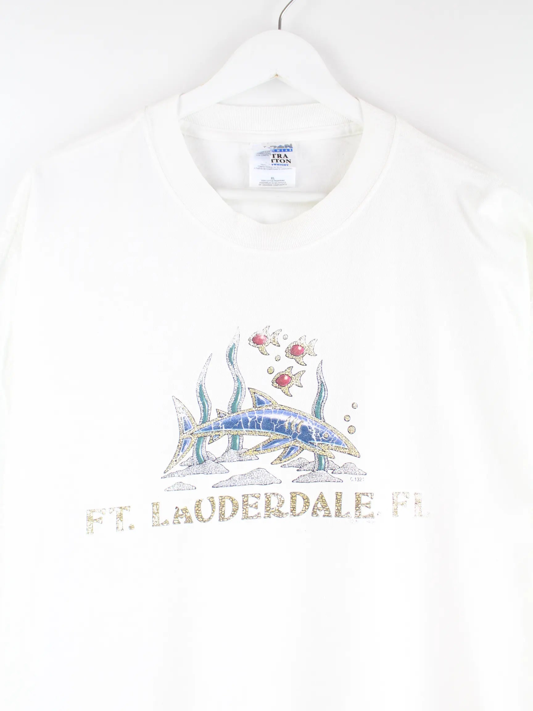 Gildan 90s Vintage Print T-Shirt Weiß XL