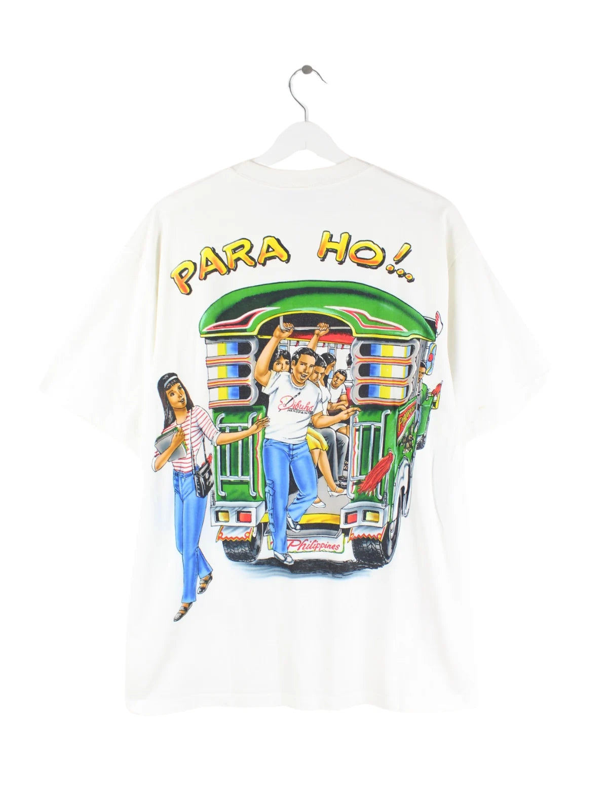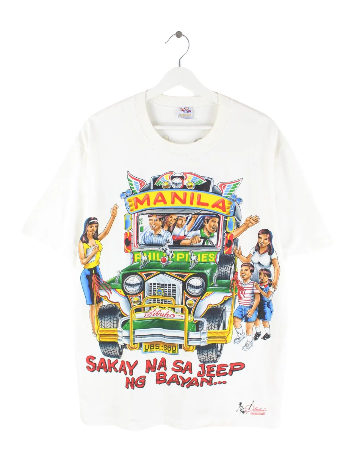 Vintage 90s Philippines Print Single Stitch T-Shirt Weiß L
