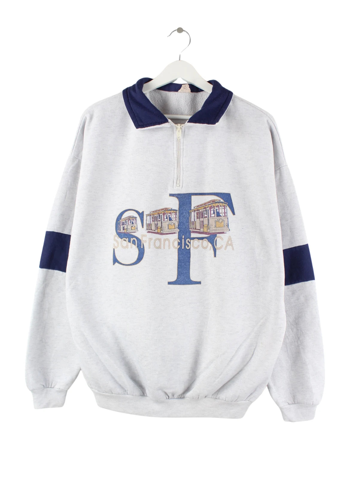 Vintage 90s San Francisco Print Half Zip Sweater Grau XL