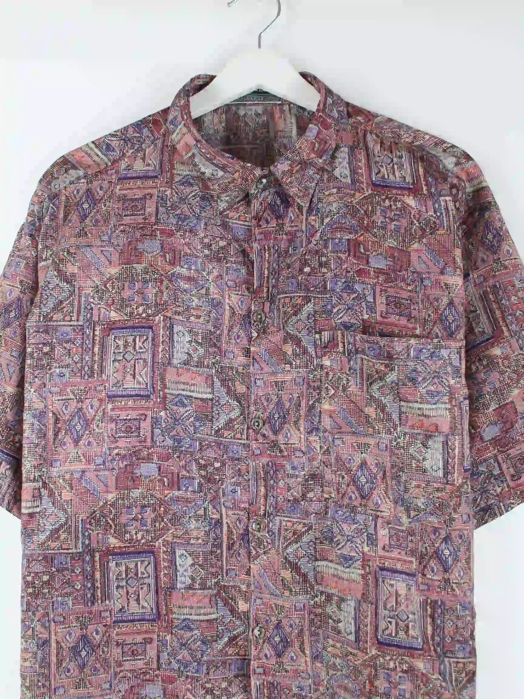 Vintage 90s Shiny Pattern Kurzarm Hemd Mehrfarbig XL