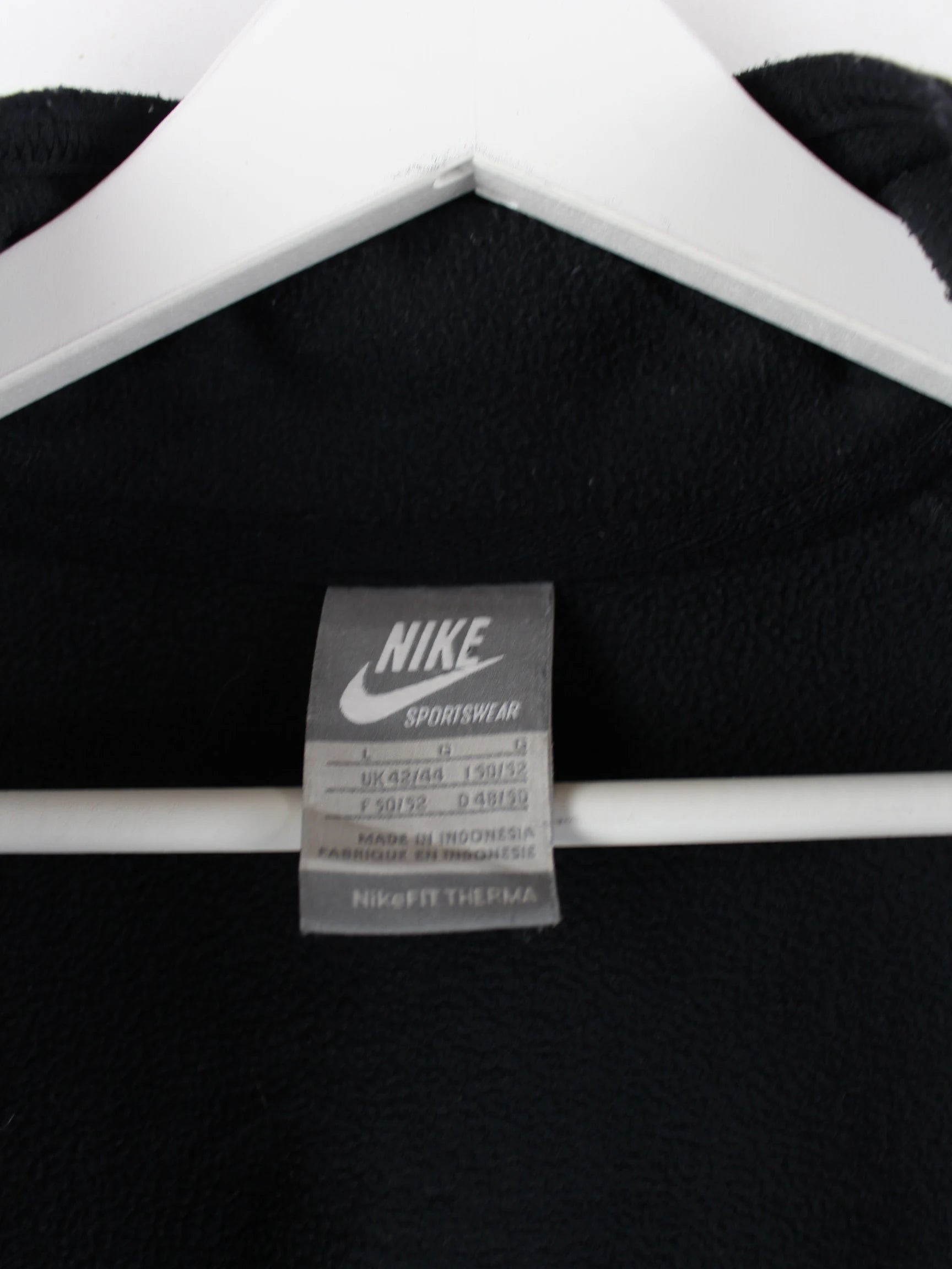 Leichte Jacke der Marke Nike in Größe L. Sie ist aus behaglichem Fleece gemacht und in Schwarz bei uns vorrätig.