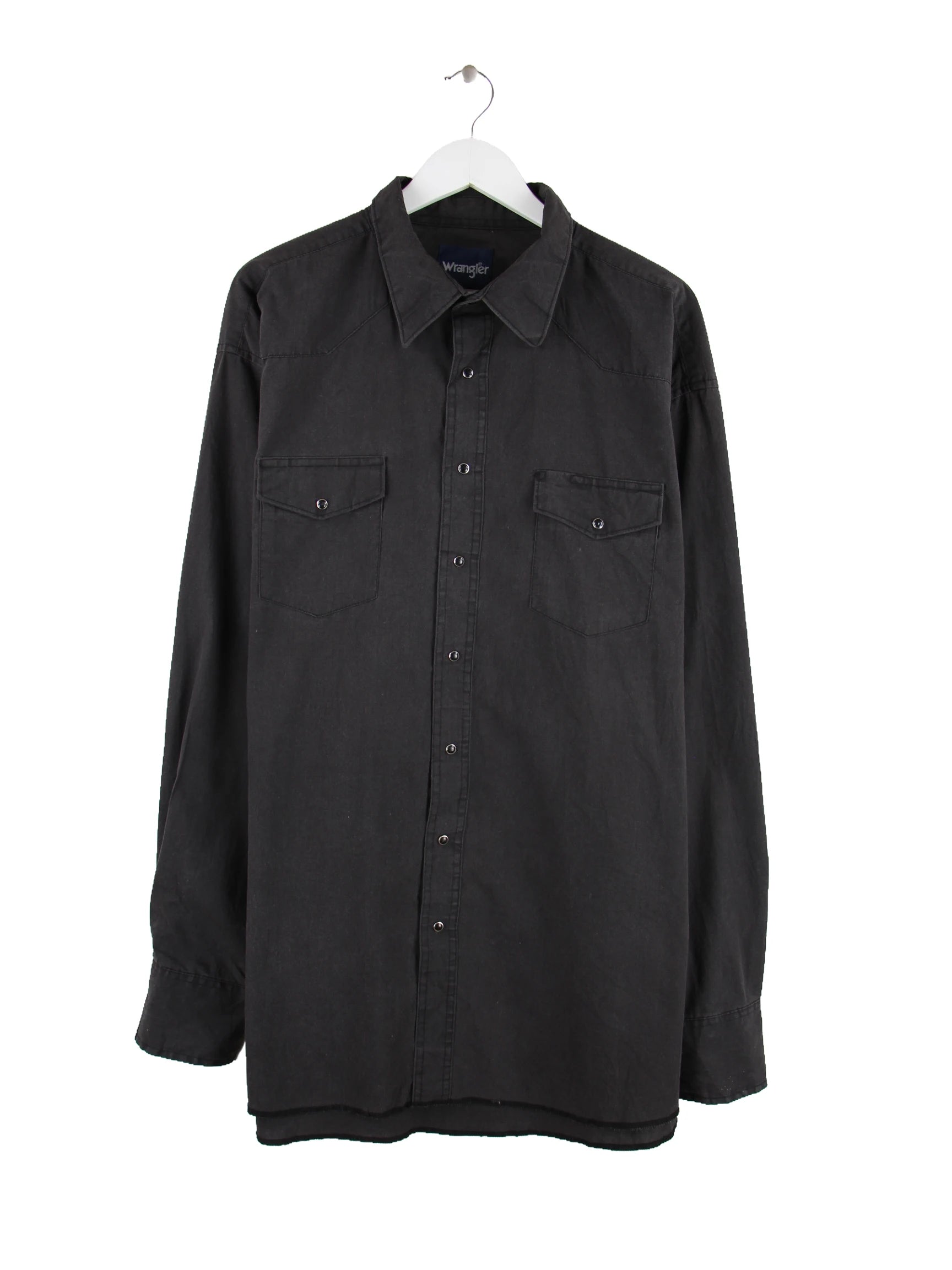 Freizeit Hemd der Brand Wrangler in Größe 3XL aus den 90'ern. Es ist aus Baumwolle und in Schwarz vorrätig.