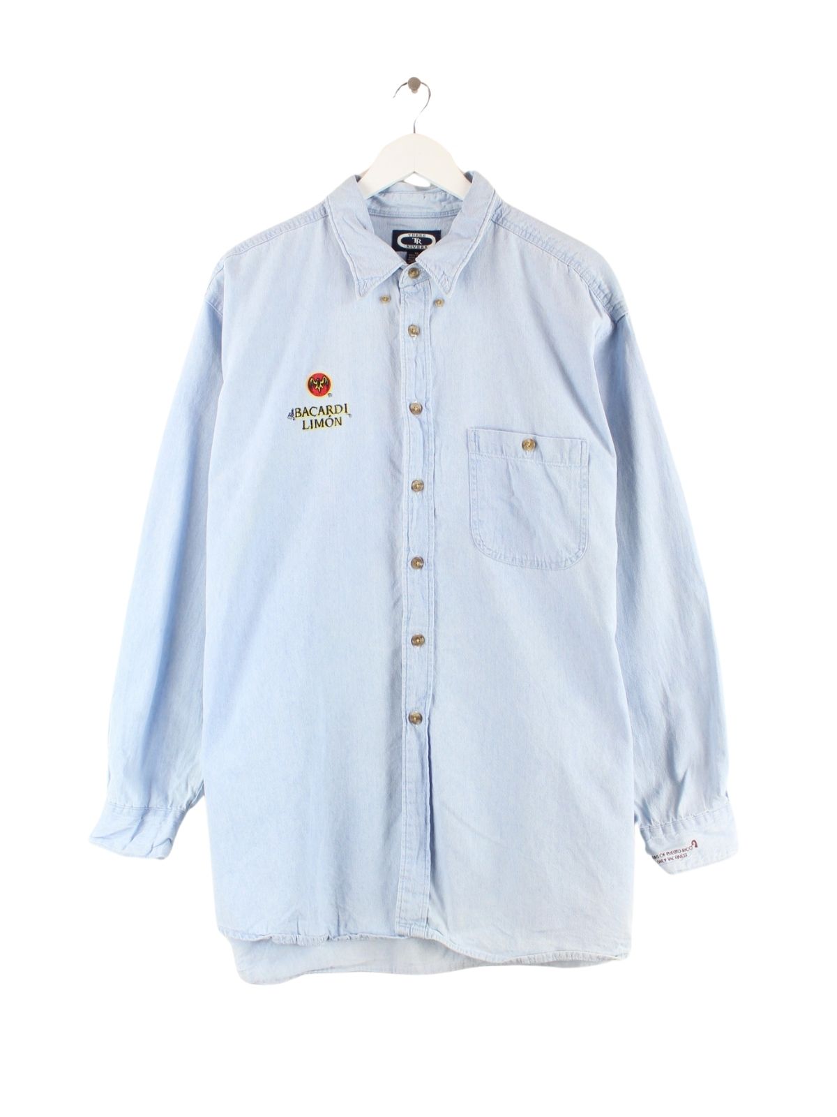 Vintage 00s Bacardi Lime Embroidered Jeans Hemd Blau XL