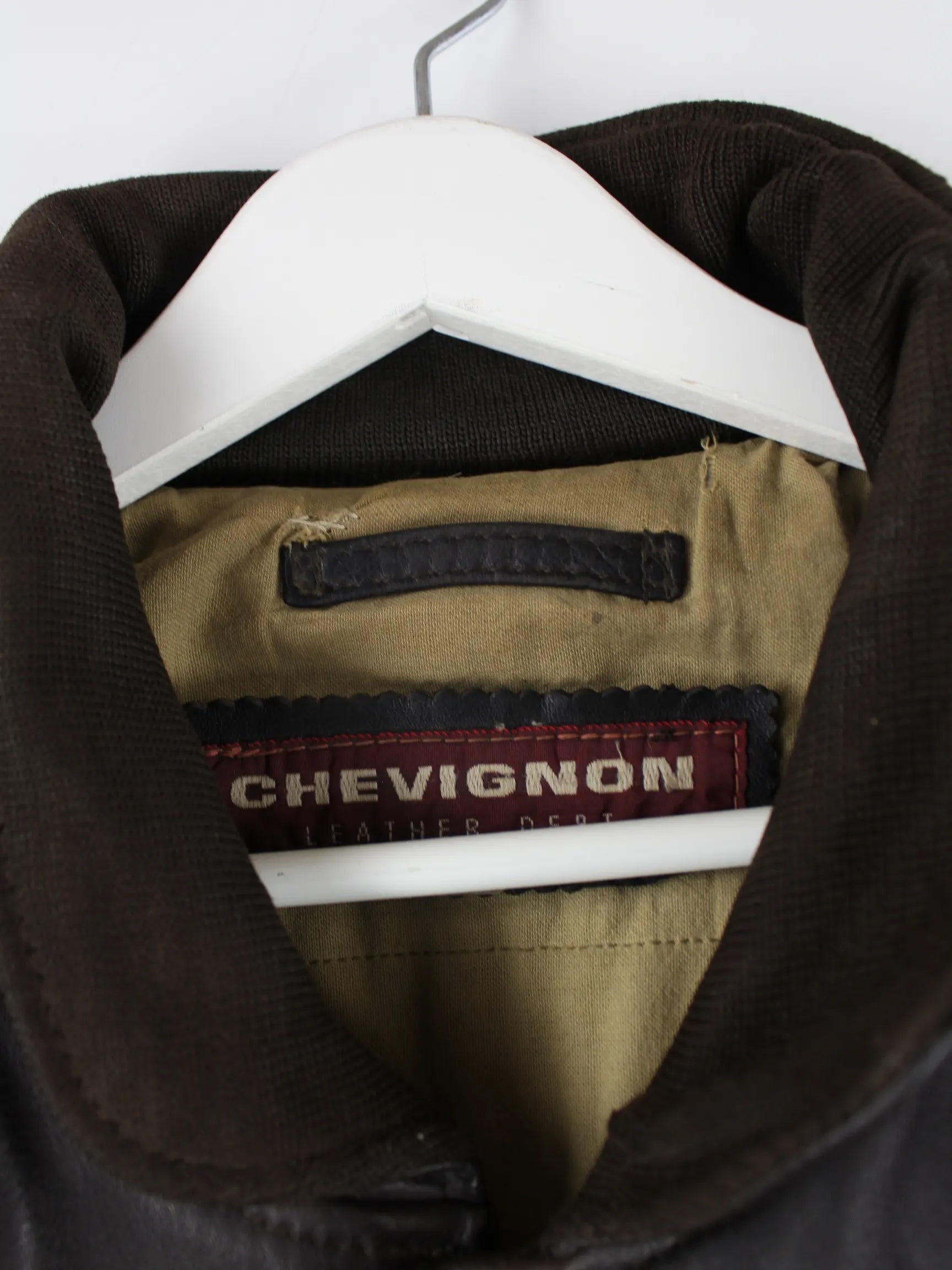 Jacke von Chevignon in Größe XXL aus den 90'ern. Sie ist aus Leder angefertigt und in Braun lieferbar.