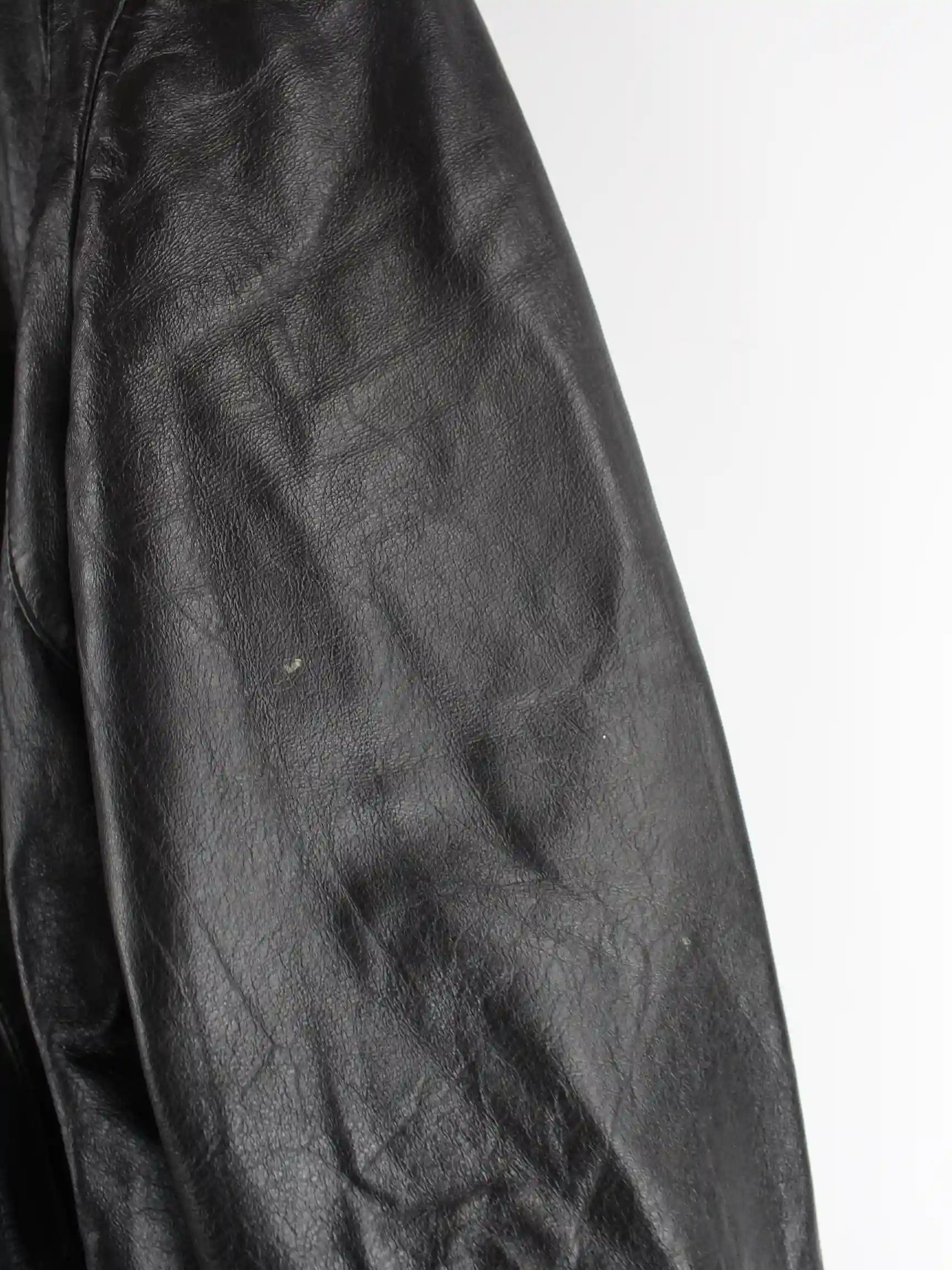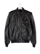 Jacke des Labels Members Only in Größe S. Sie ist aus Leder gefertigt und in Schwarz bei uns zu bekommen.