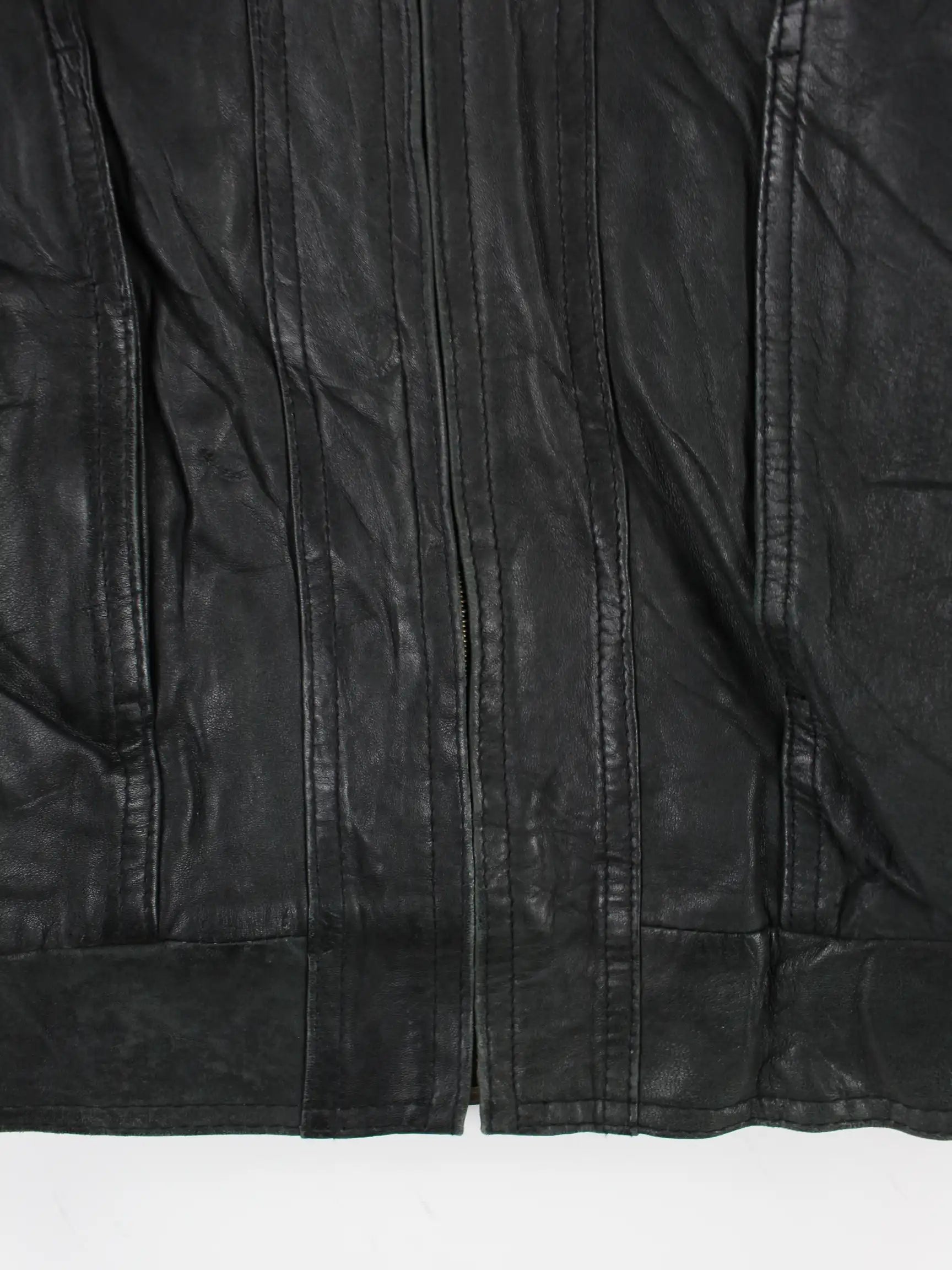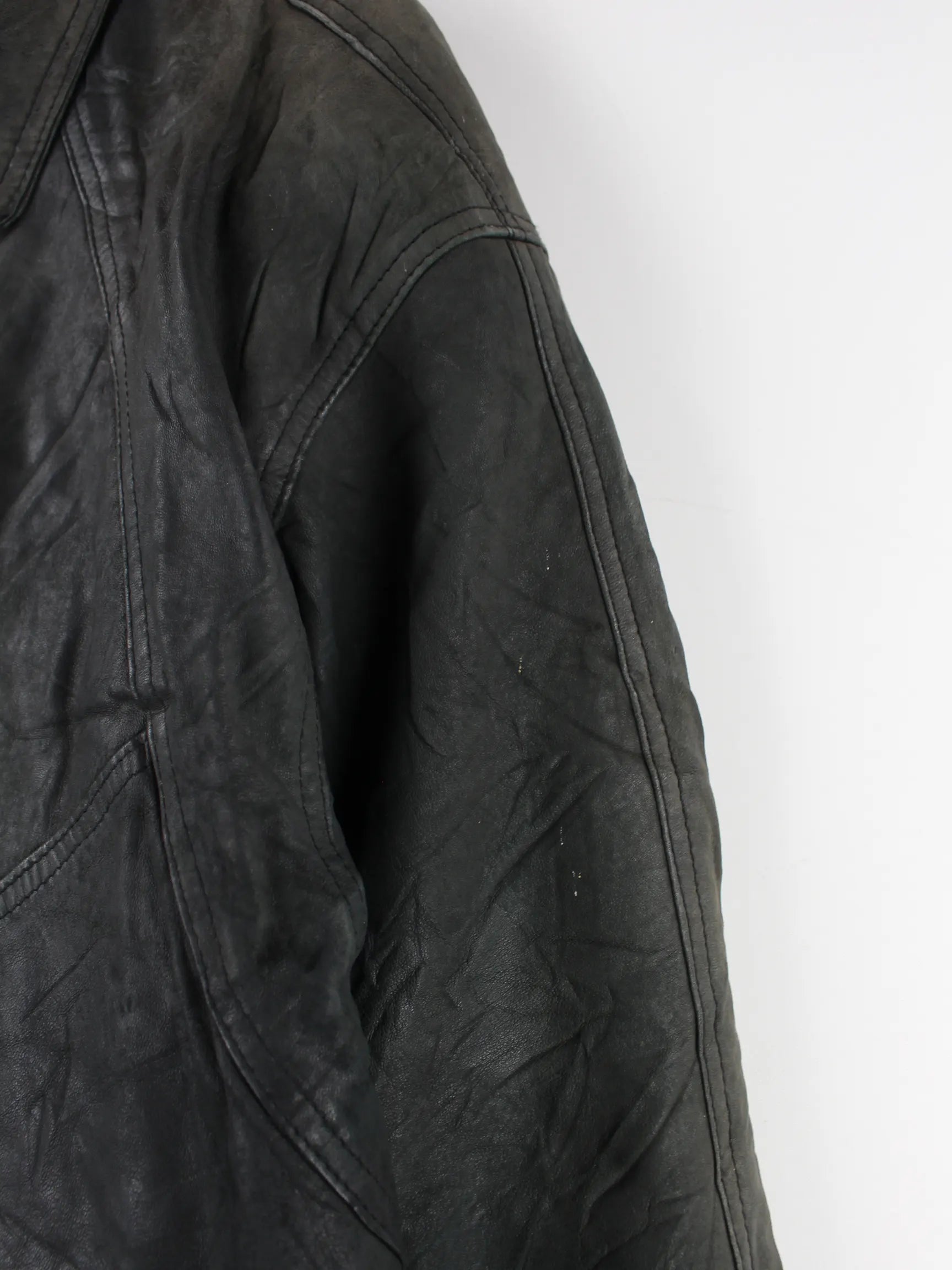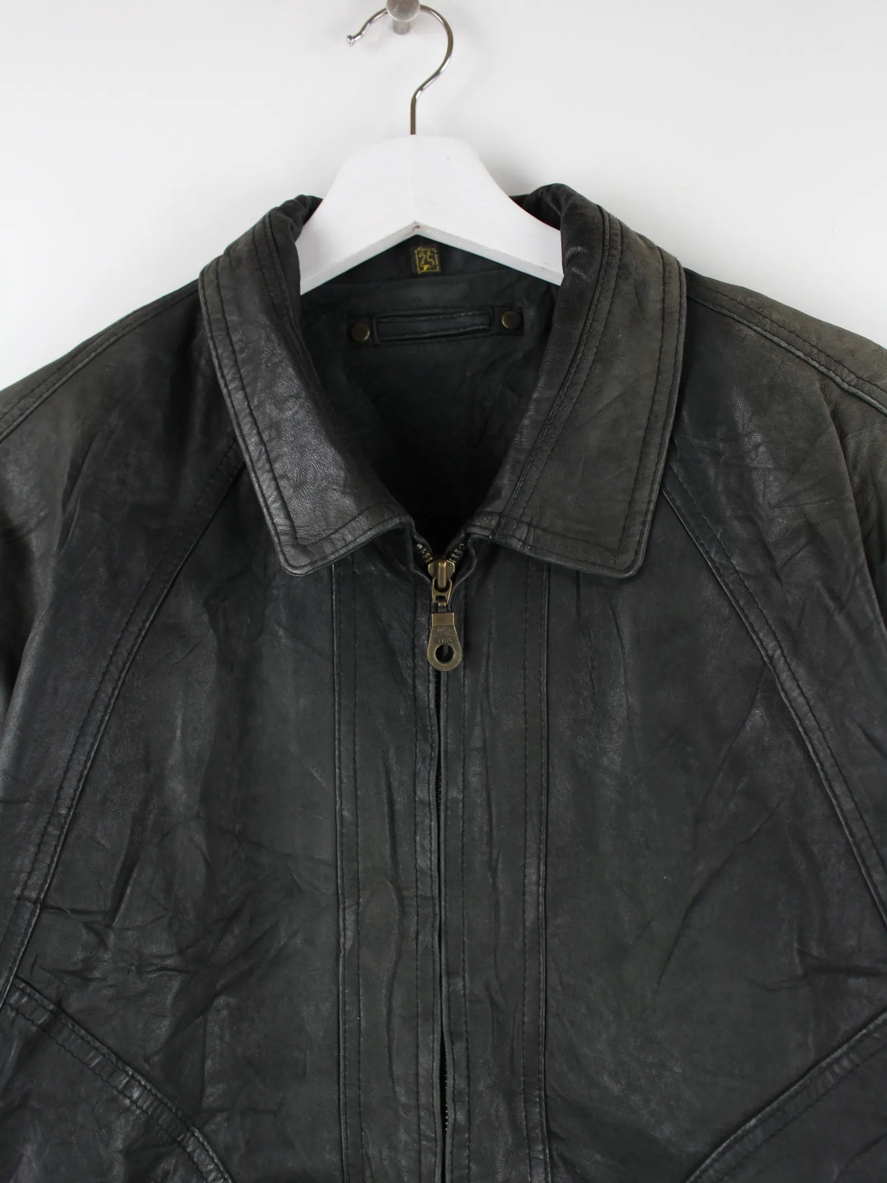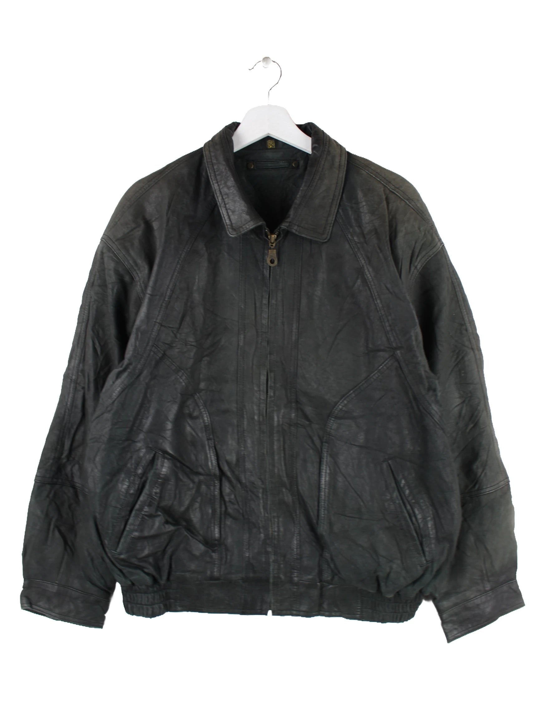 Vintage Jacke in Größe M aus den 90'ern. Sie ist aus Leder und in Grau auf Lager.