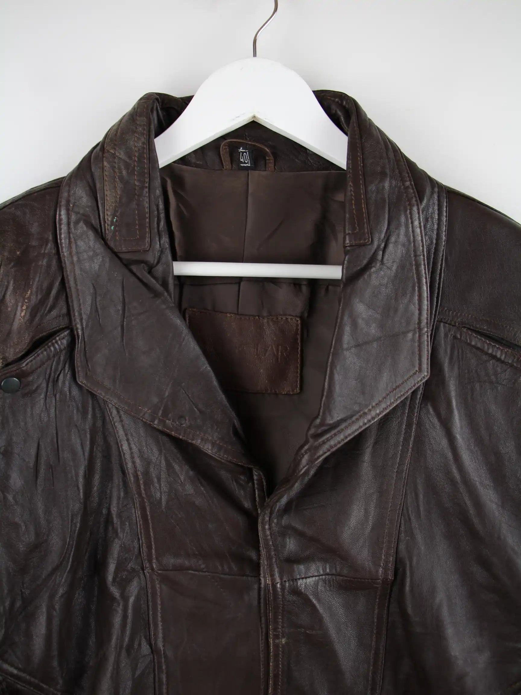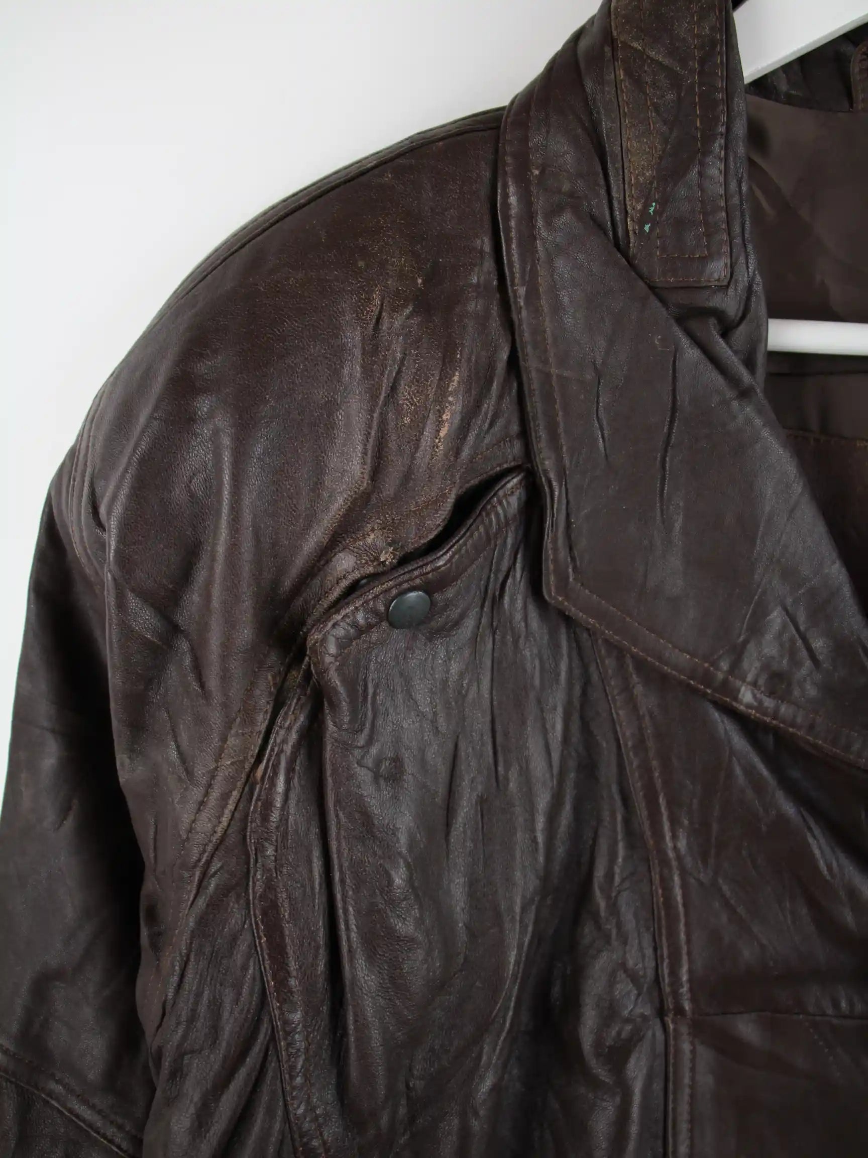 Vintage Jacke in Größe S aus den 90'ern. Sie ist aus Leder und in Braun auf Lager.