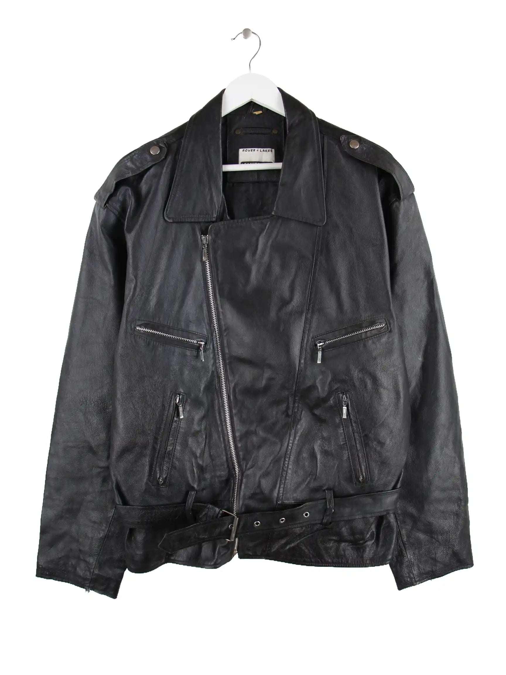 Vintage Biker Leder Jacke Schwarz XL