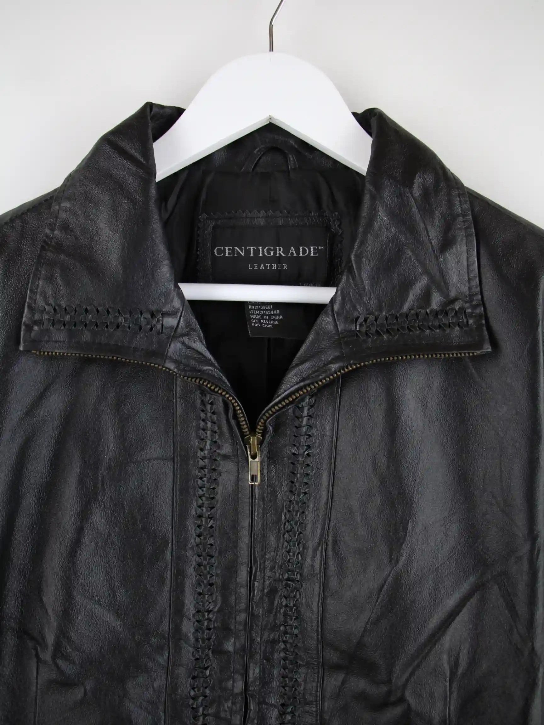 Schwarze Vintage Jacke in Größe L. Sie ist aus Leder hergestellt und in gutem Zustand im Angebot.