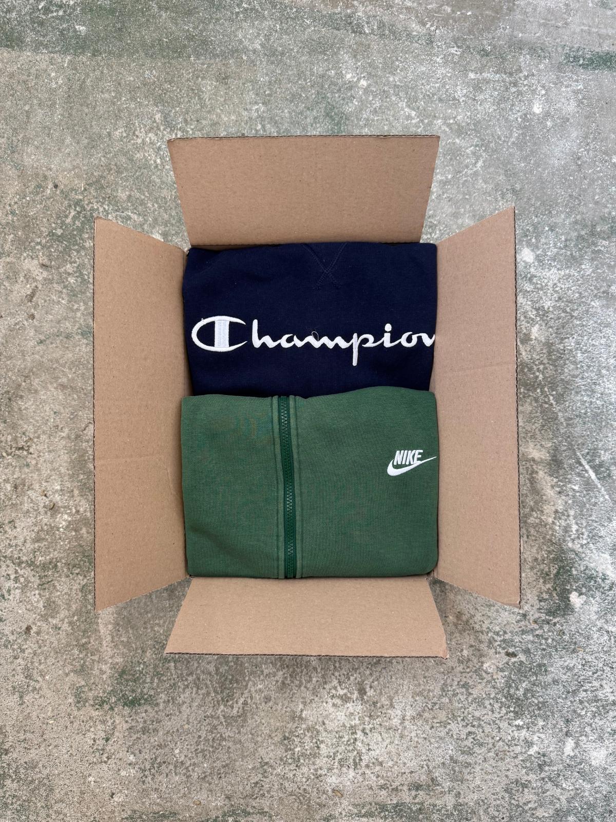 Je nach Auswahl enthält die Mystery Box zwei, drei oder vier Sweater und Hoodies in der gewünschten Größe. Zur Auswahl stehen die Größen XS, S, M, L, XL, XXL und 3XL. Alle Artikel sind geprüft, sauber und sofort tragbar.
