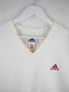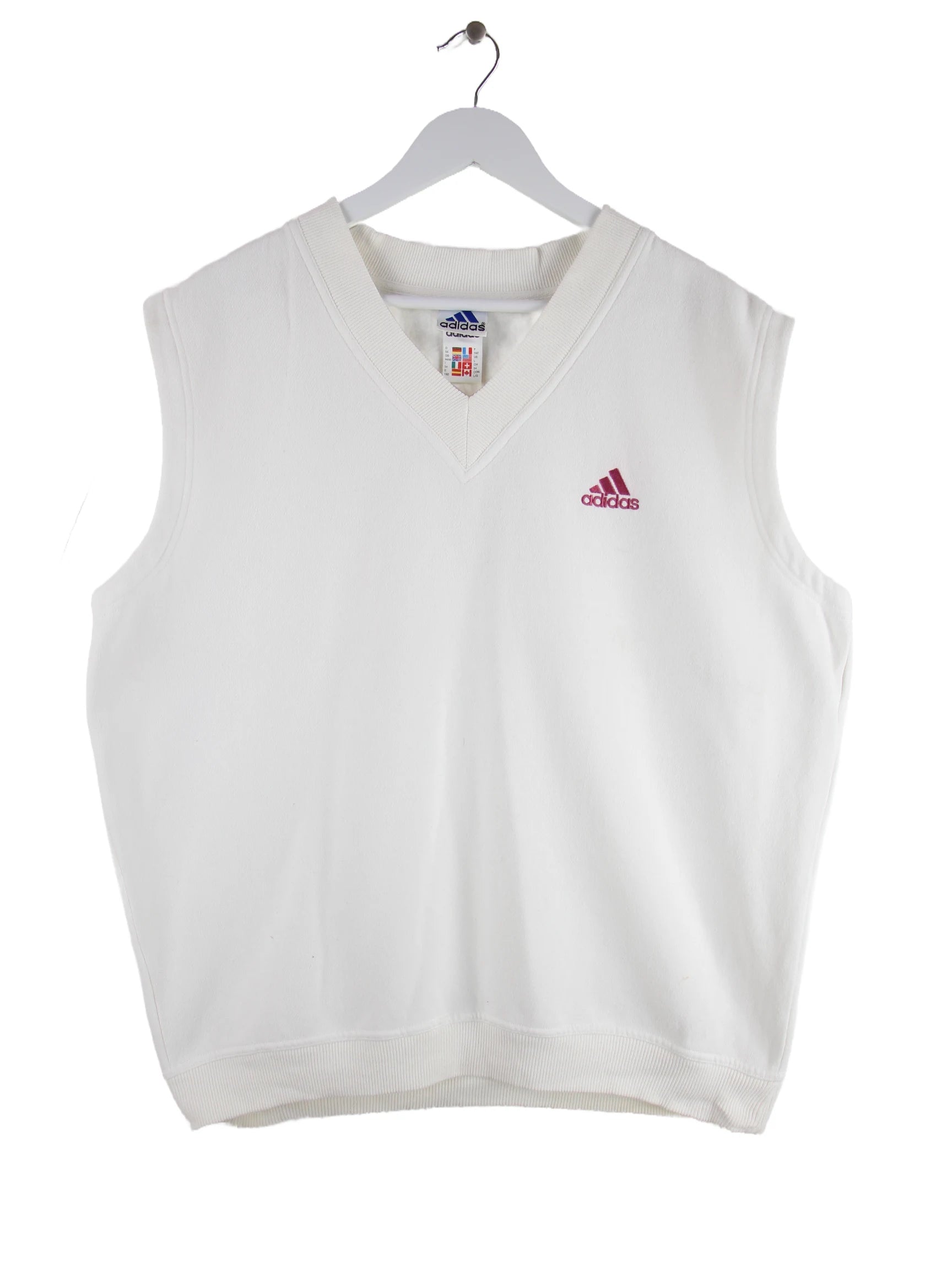 Weißer Pullunder der Marke Adidas aus den 90'ern in Größe XL. Er ist aus einer Baumwollmischung und in sehr gutem Zustand in Stock.