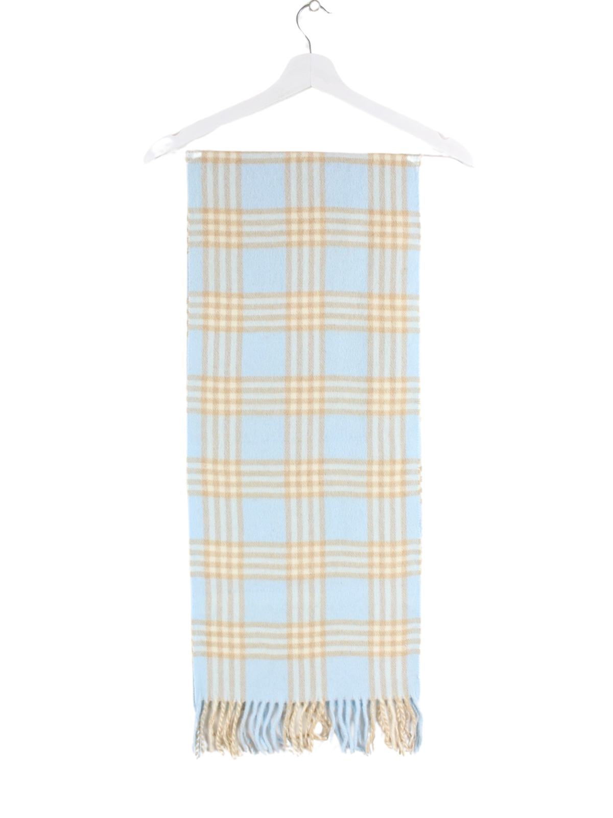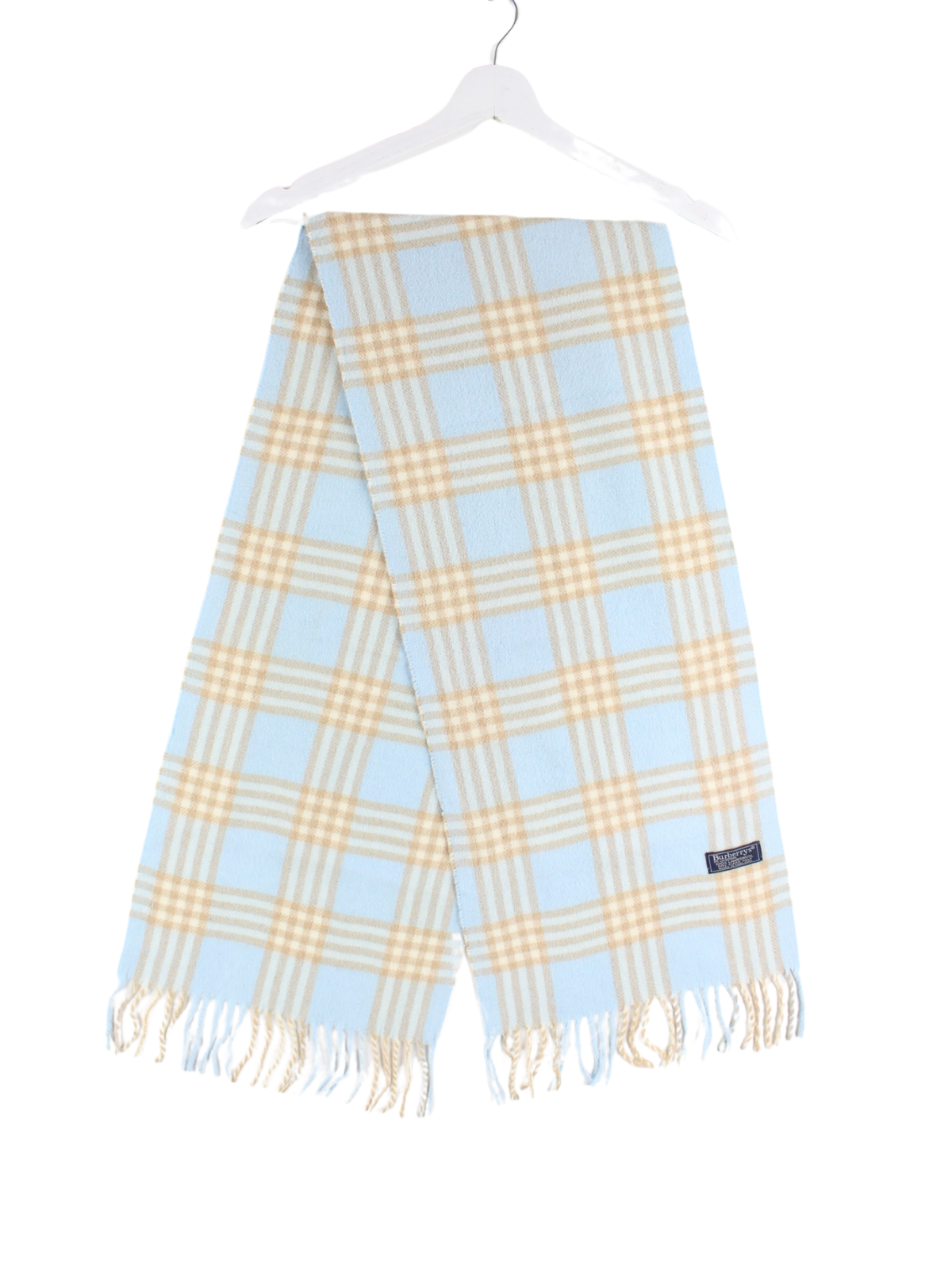 Blau / Beiger Burberry 90s Vintage Schal aus 100% Lammwolle.