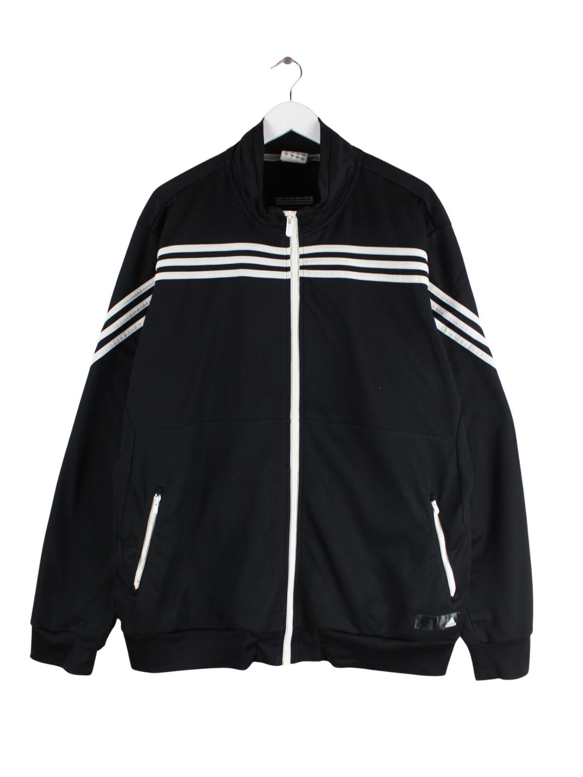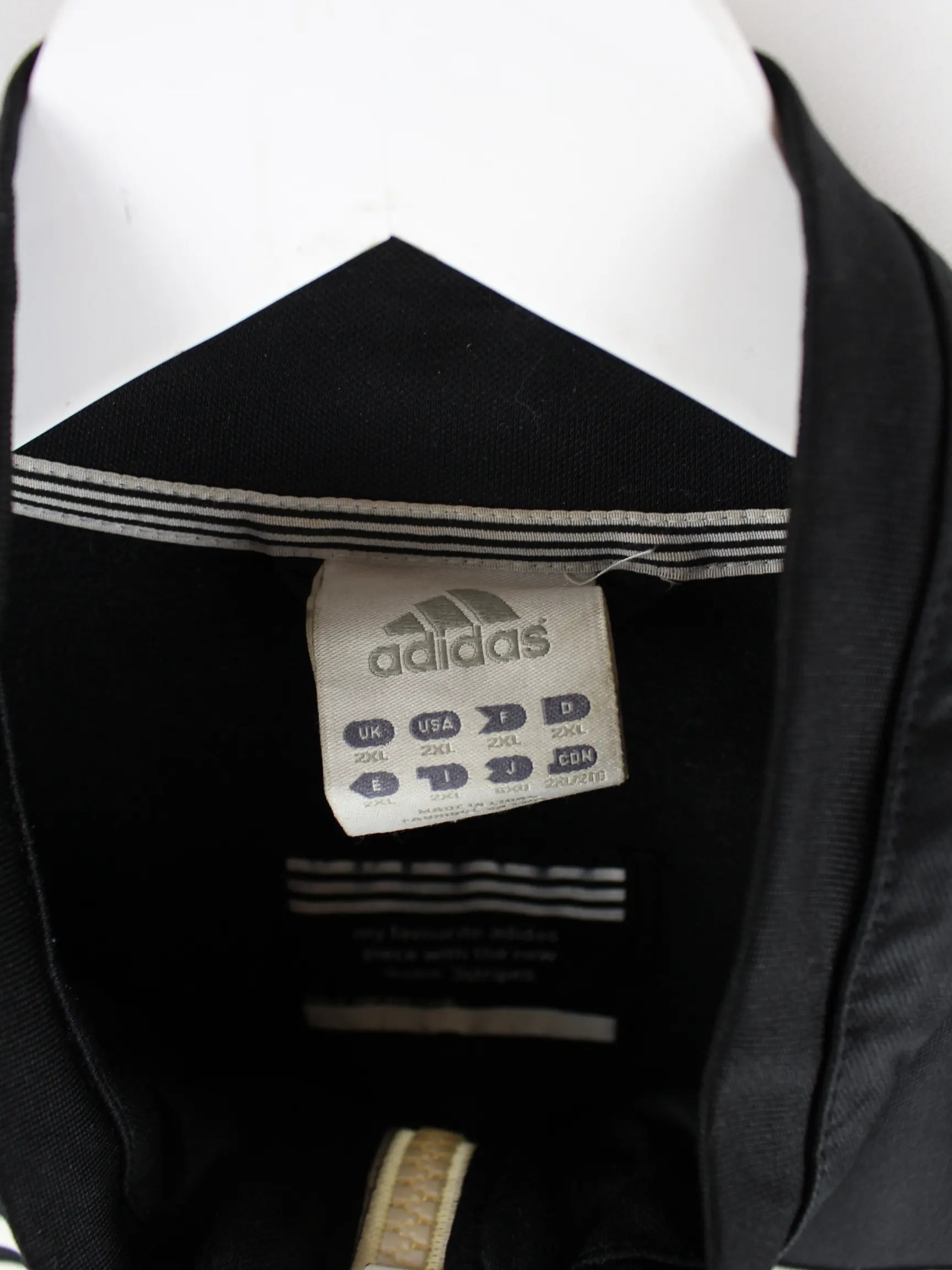Schwarze Trainingsjacke der Marke Adidas in Größe XXL. Sie ist aus Synthetik hergestellt und in gutem Zustand im Bestand.