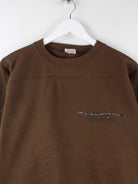 Brauner Vintage Sweater in Größe M. Er ist aus einer Baumwollmischung produziert und in sehr gutem Zustand bei uns vorrätig. Mit tollem Indiana Print.