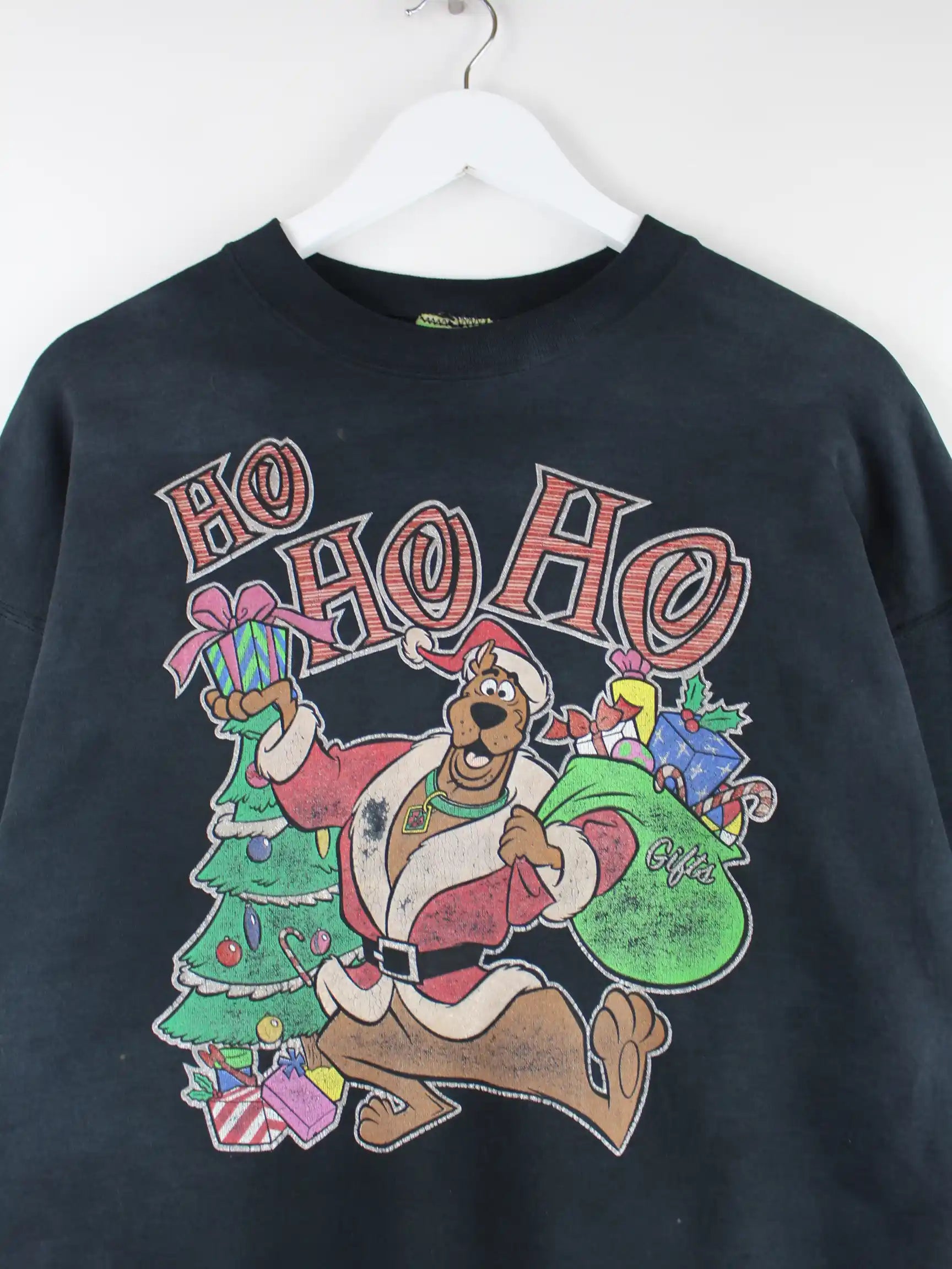 Vintage 00s Scooby Doo Christmas Print Faded Sweater Schwarz L