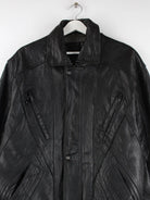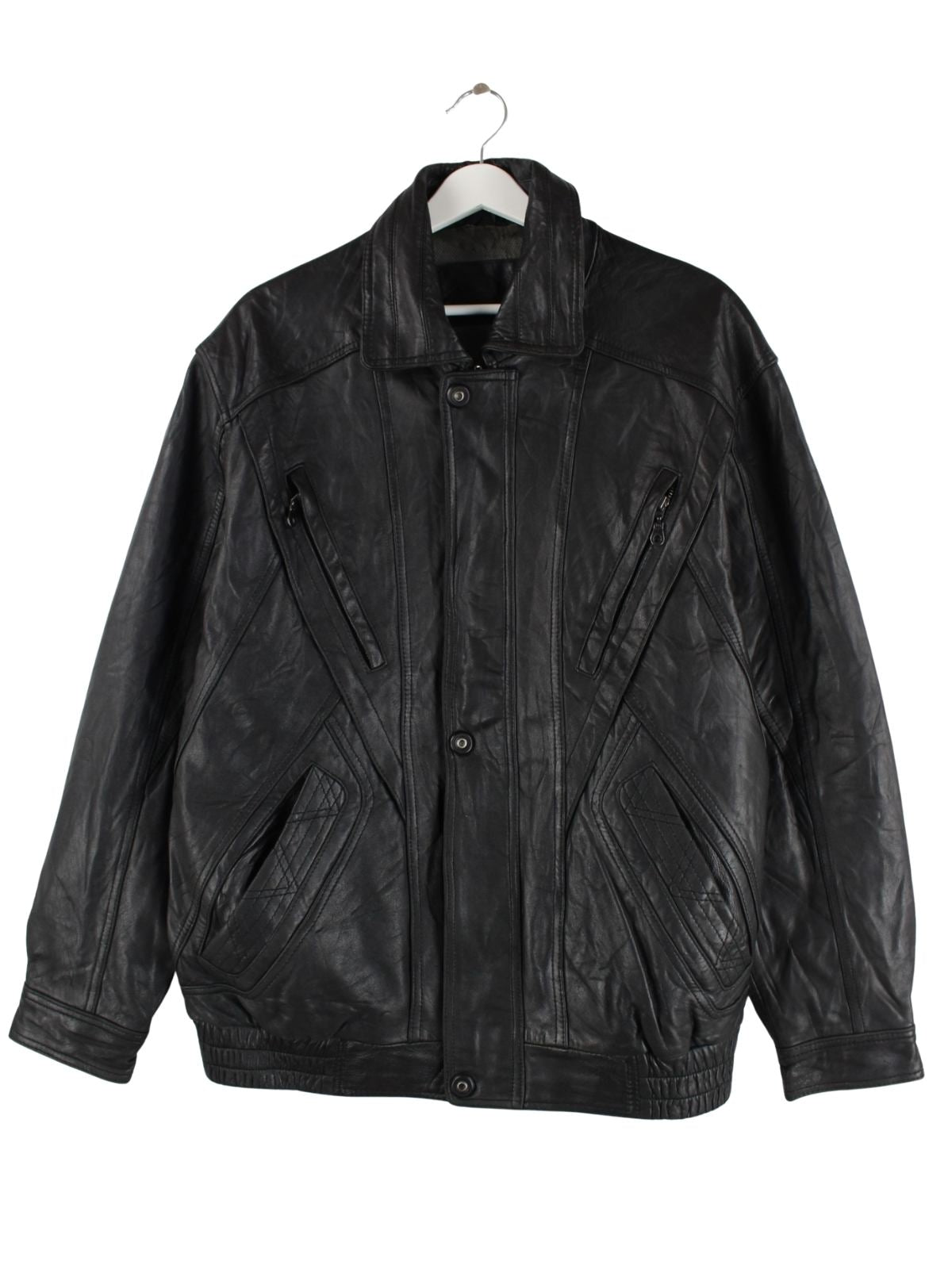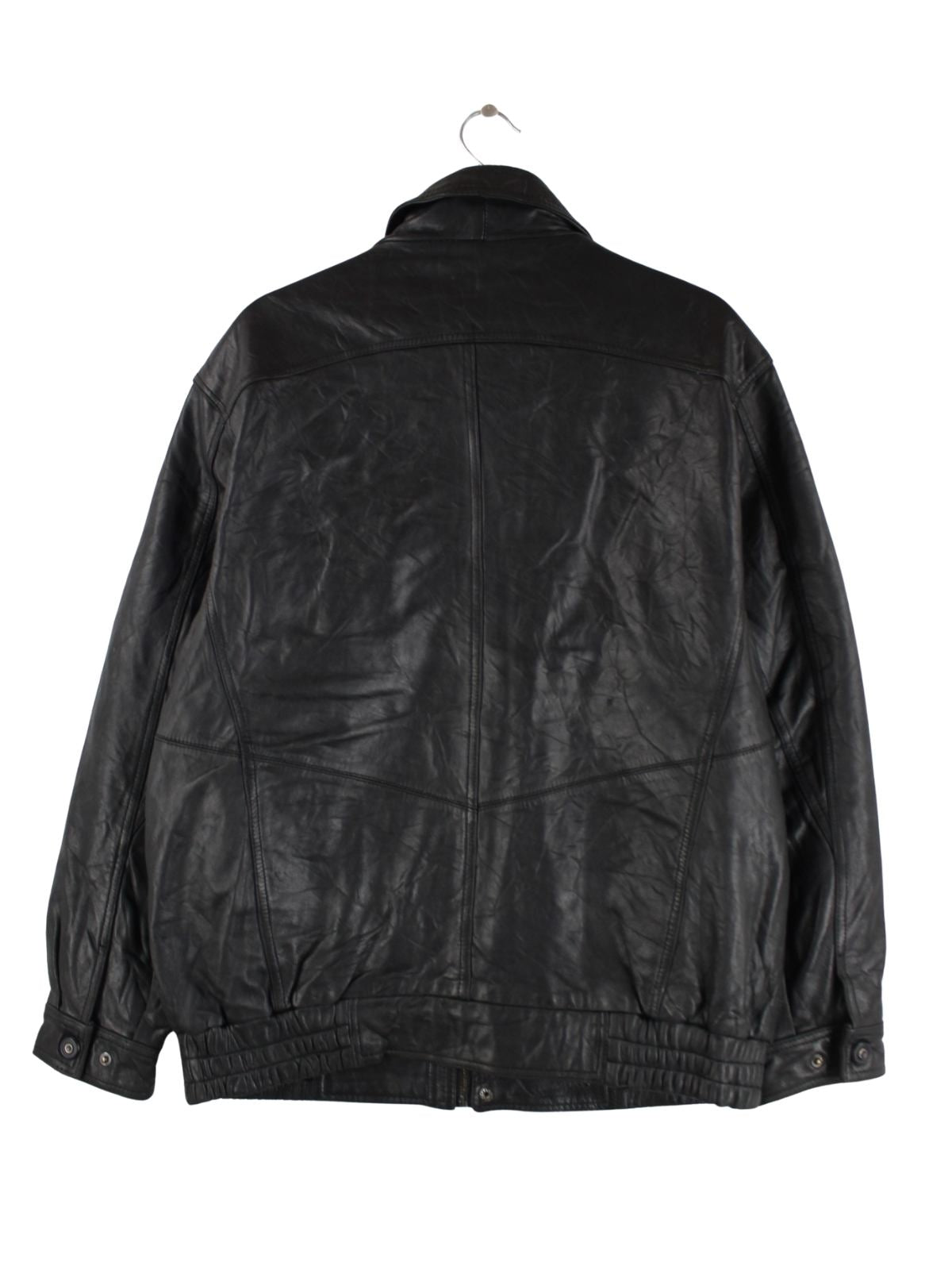 Schwarze Vintage Jacke aus den 90'ern in Größe L. Sie ist aus Leder hergestellt und in gutem Zustand zu bekommen.