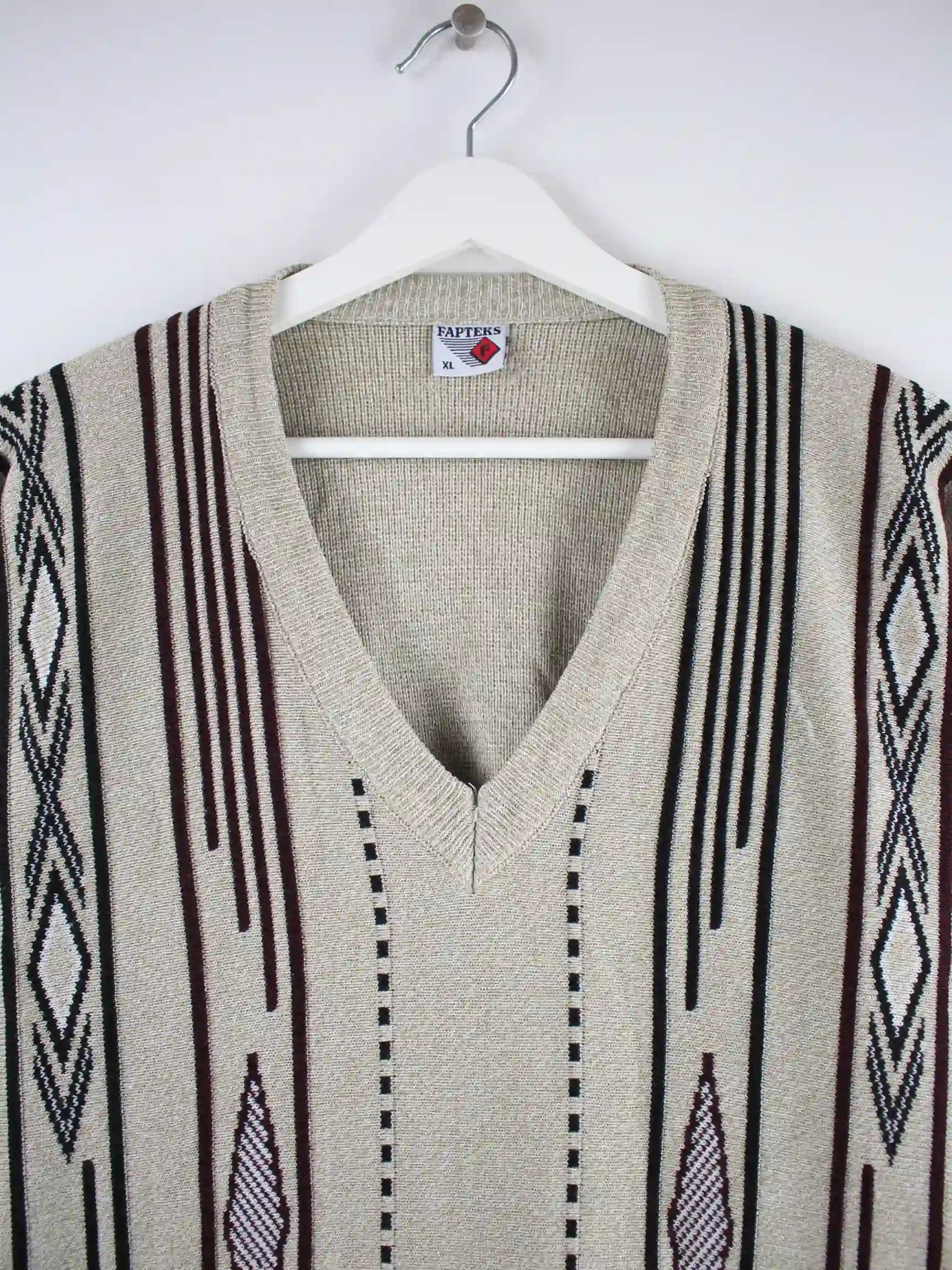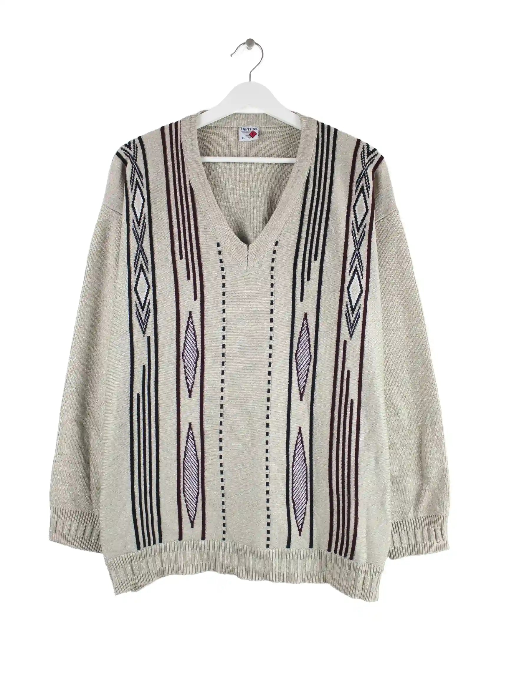 Vintage 90s V-Neck Pullover Grau XL
