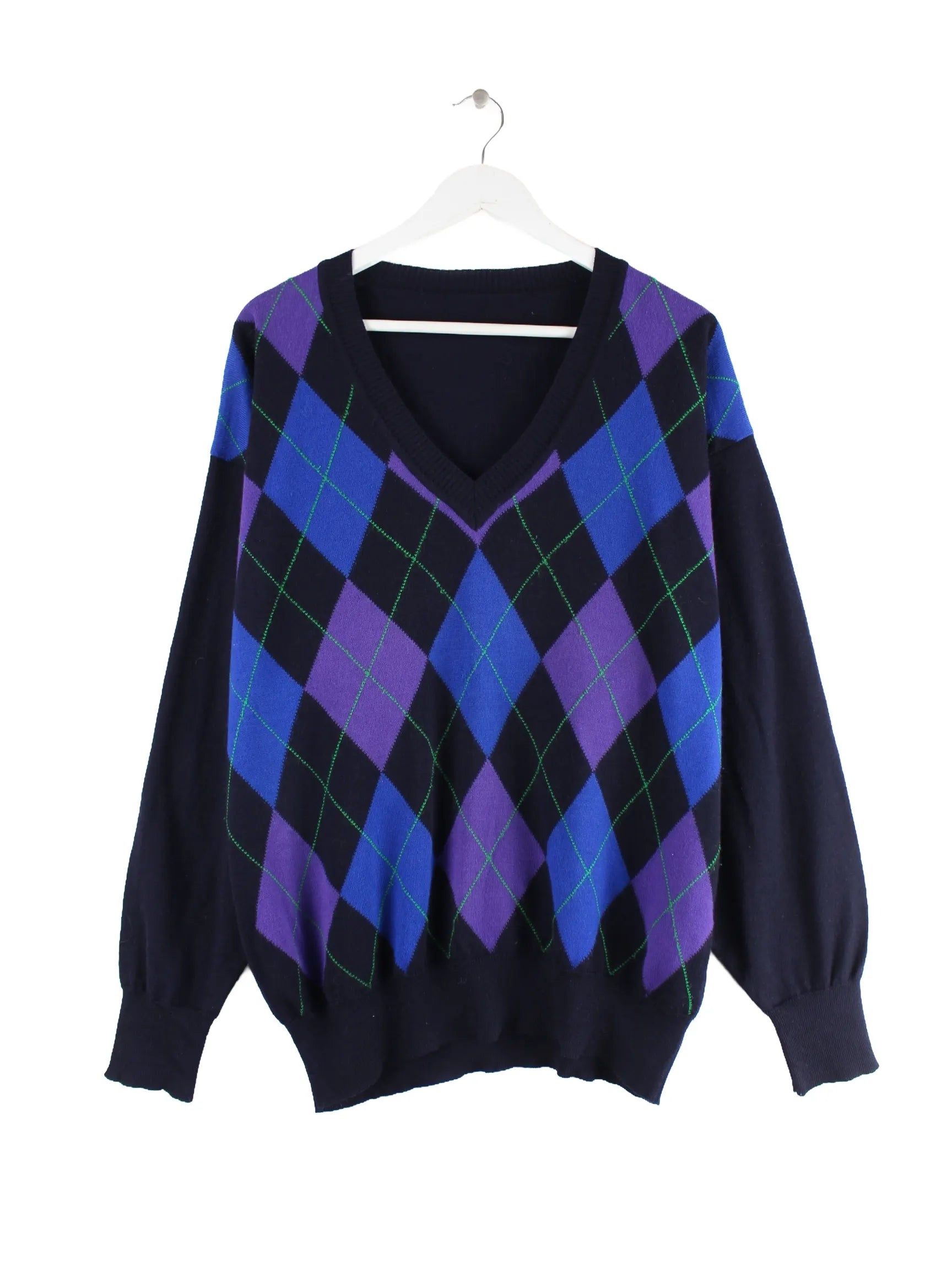 Blauer Vintage Pullover in Größe L. Er ist aus Baumwolle produziert und in sehr gutem Zustand zu haben.