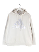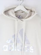 Hoodie aus dem Hause Adidas in Größe XL. Er ist aus einer Baumwollmischung gemacht und in Beige zu haben. Mit seltenem Logo Print.